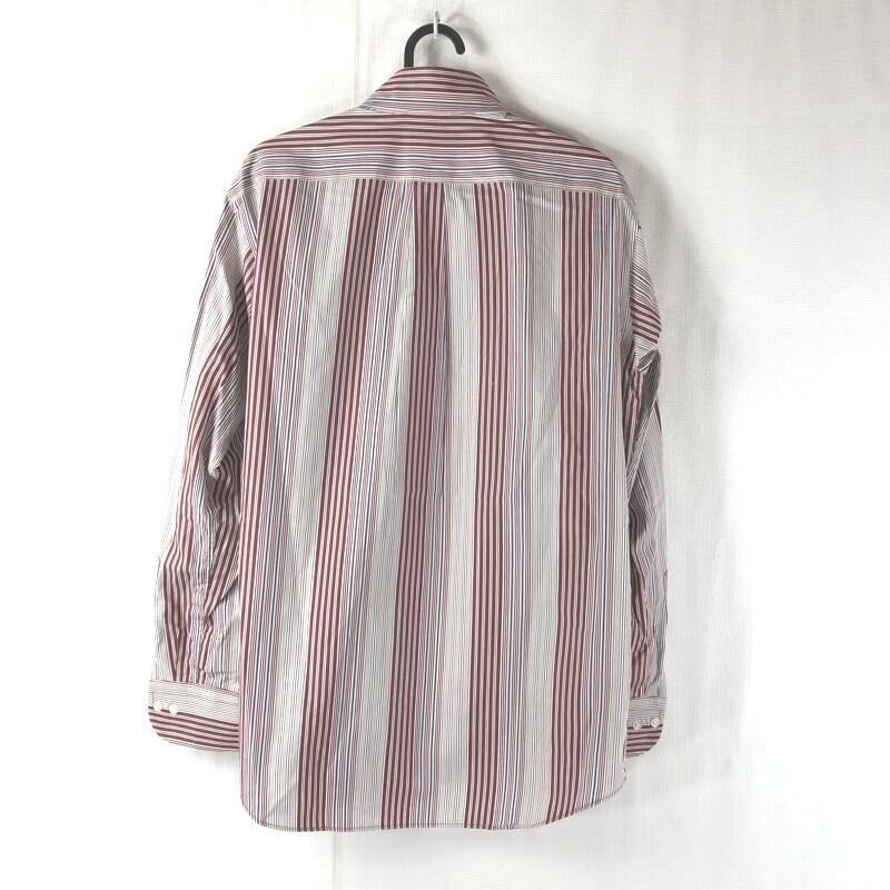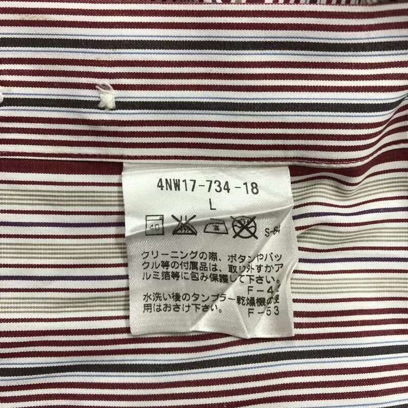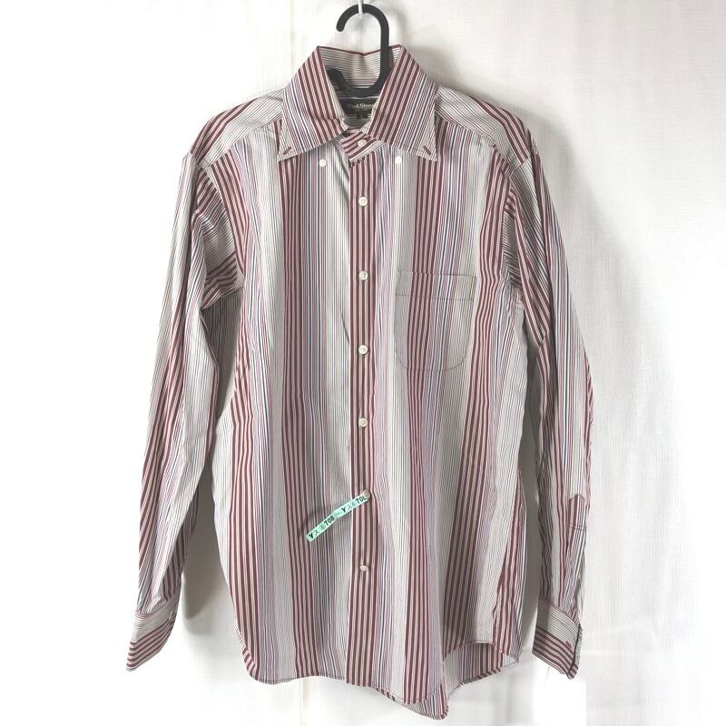 ポールスチュアート PAUL STUART シャツ ストライプ 綿100% 胸ポケット エンジ色系 Lサイズ 929785
