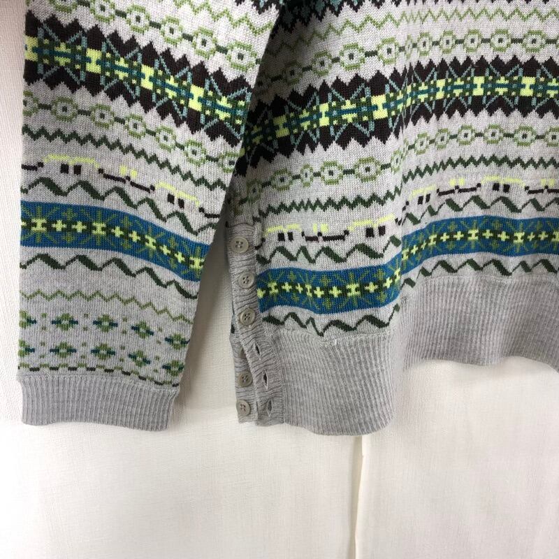 ソニアリキエル SONIA RYKIEL ニット タートルネック ノルディック柄 リブ 緑 グレー系 46サイズ 929814