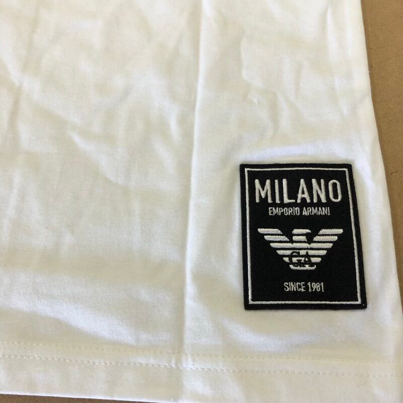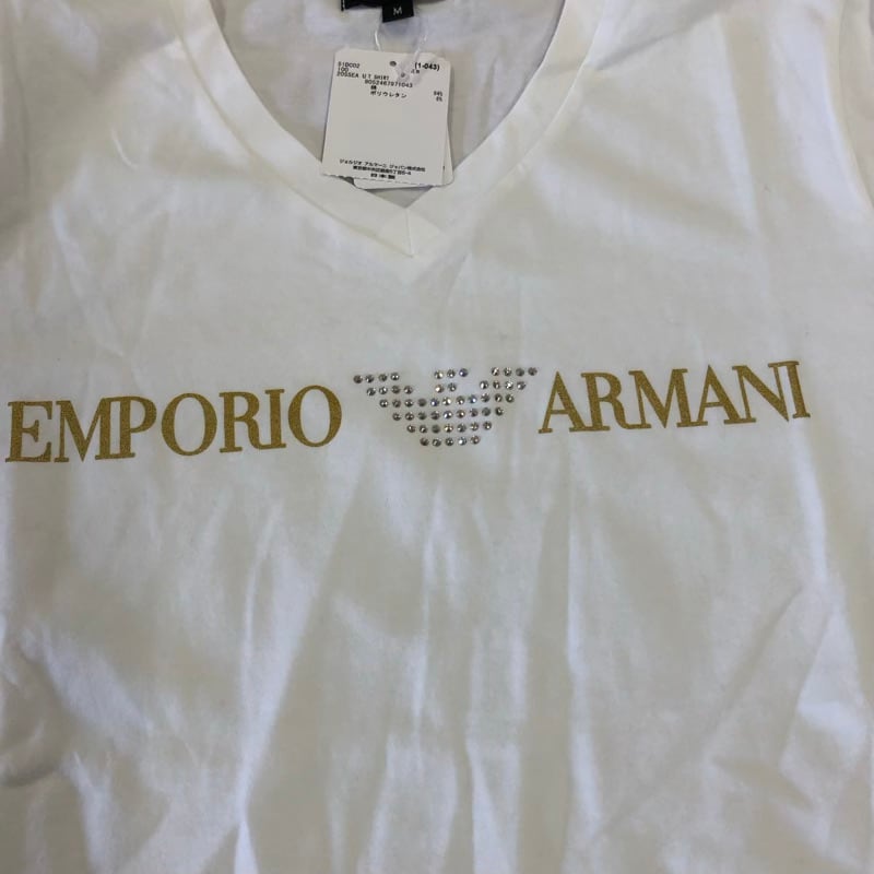 エンポリオアルマーニ EMPORIO ARMANI Tシャツ 半袖 ブランド印字 ラインストーン タグ付き 日本製 白 Mサイズ 929822