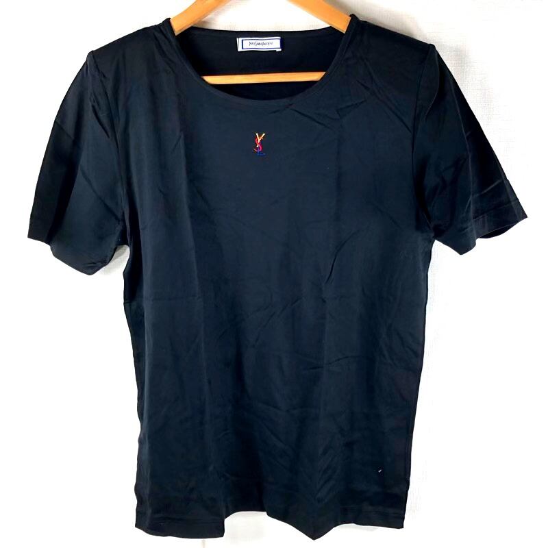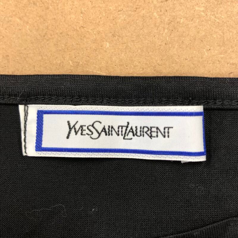 イヴサンローラン Yves Saint Laurent カットソー 半袖 ワンポイント 綿100% 肩パッド 黒 Mサイズ 930046