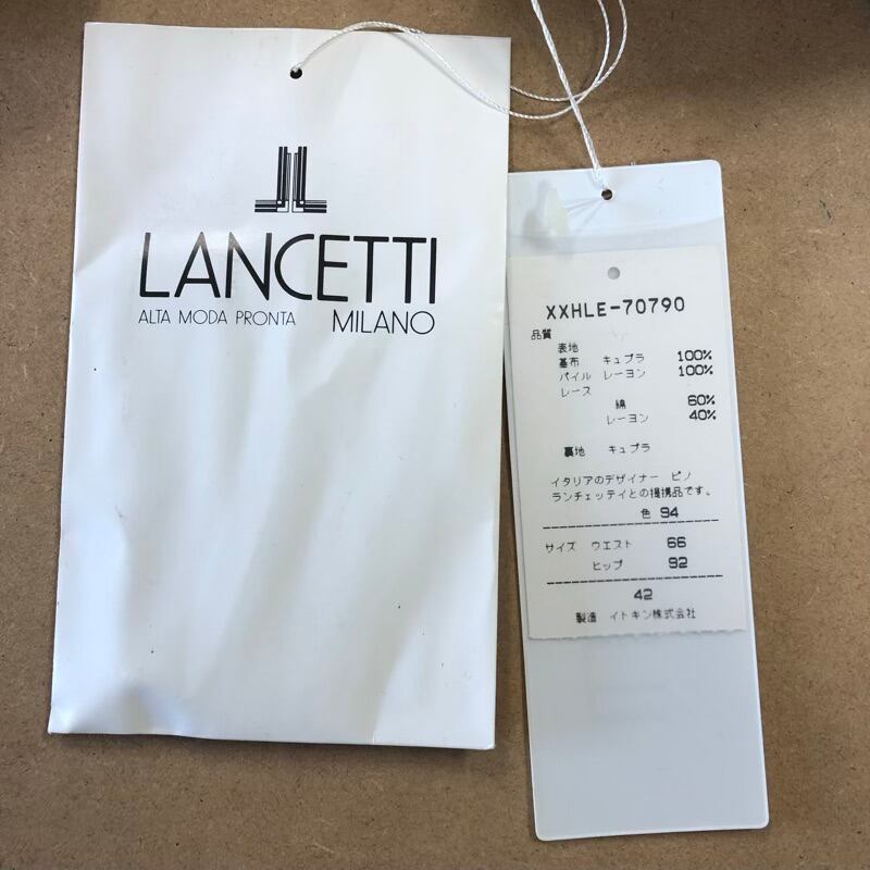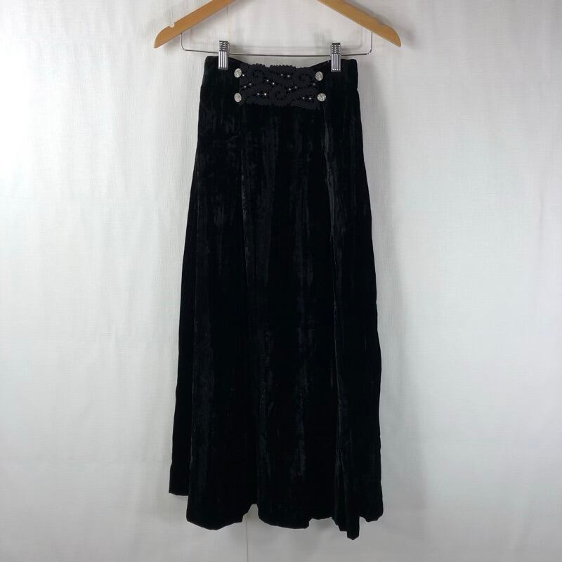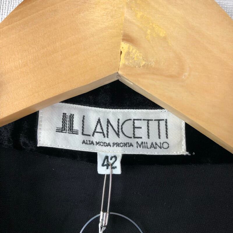 ランチェッティ LANCETTI MILANO セットアップ ジャケット ロングスカート ベロア ビジュー レース 飾りボタン フレア タグ付き 肩パッド 黒 42サイズ 931146 | Ethical Store