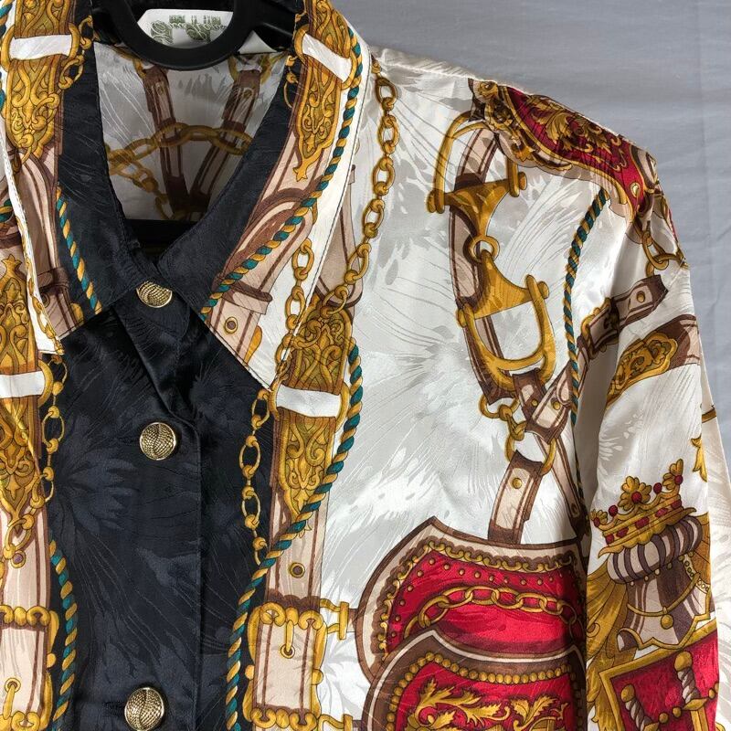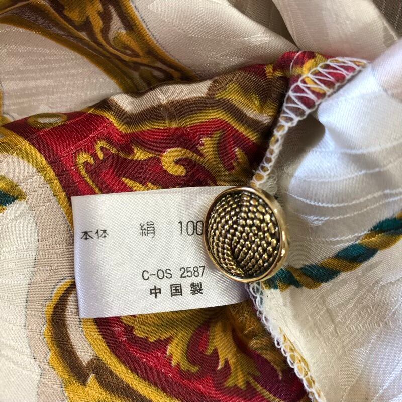 エルコラノ Erco Rano ブラウス シャツ カットソー 長袖 絹100% ゴールドボタン タグ付き 肩パッド 赤 黒 白系 9サイズ 931423