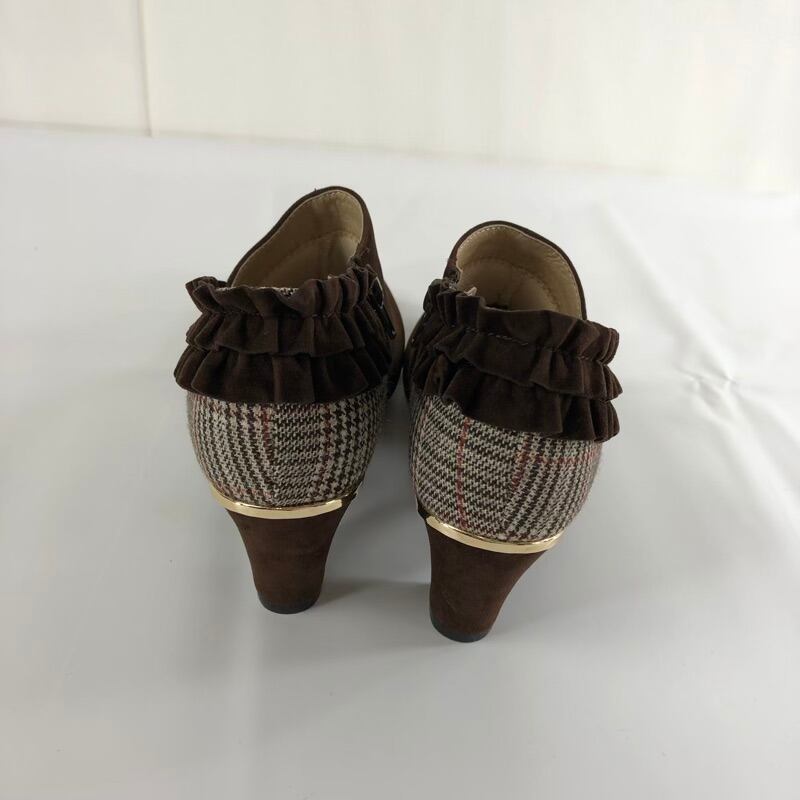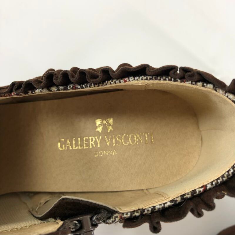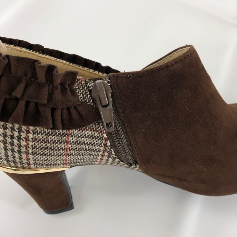 ギャラリービスコンティ GALLERY VISCONTI ブーツ ショートブーツ ヒール スエード グレンチェック柄 フリル ファスナー ブラウン Mサイズ 931568 | Ethical Store