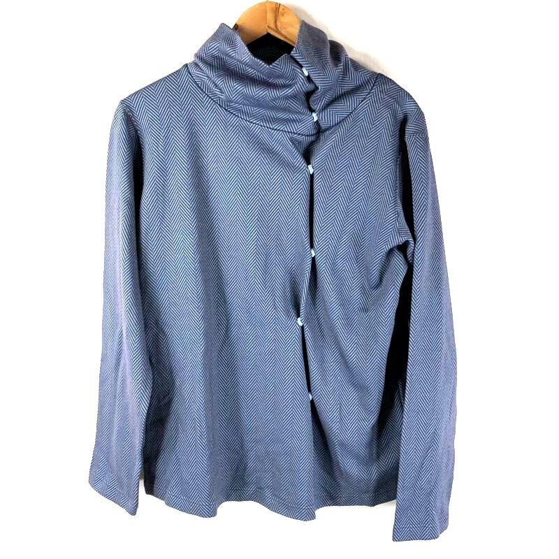 ランバンオンブルー LANVIN en Bleu カットソー ハイネック 長袖 スナップボタン タグ付き 日本製 ブルー系 50サイズ 932669