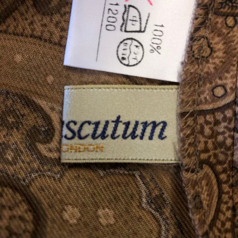アクアスキュータム Aquascutum OF LONDON ブラウス カットソー 長袖 ハイネック ダマスク柄 日本製 肩パッド ブラウン 茶色系 932667