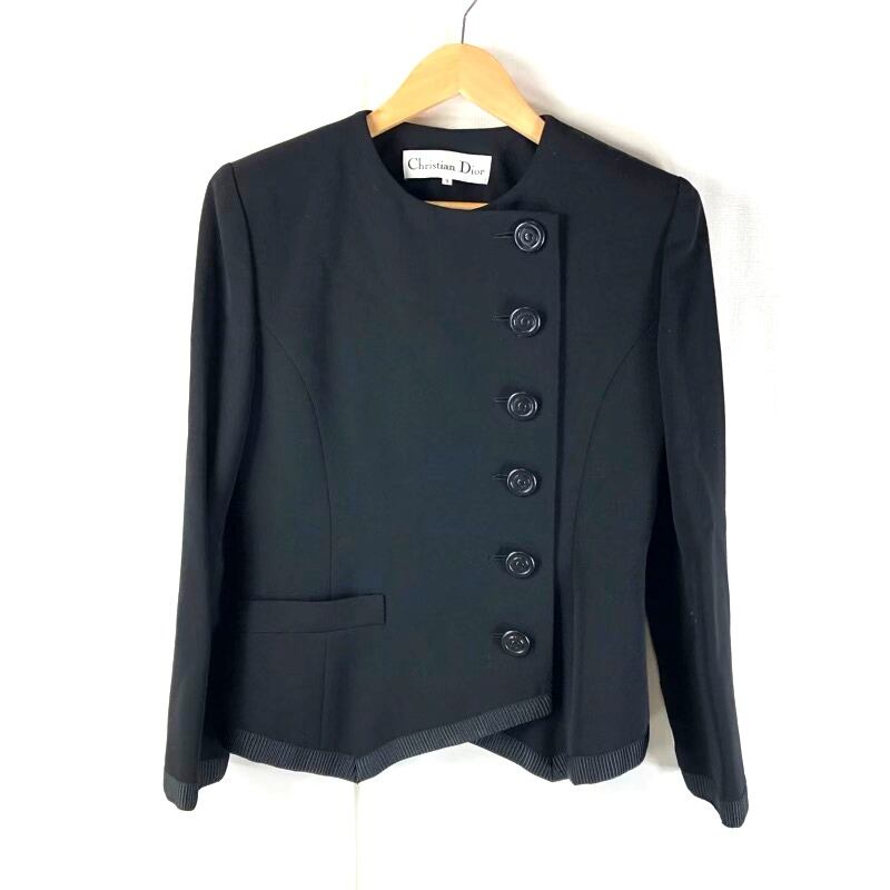 クリスチャンディオール Christian Dior ジャケット ボタンデザイン スリット袖 肩パッド 黒 9サイズ 932893