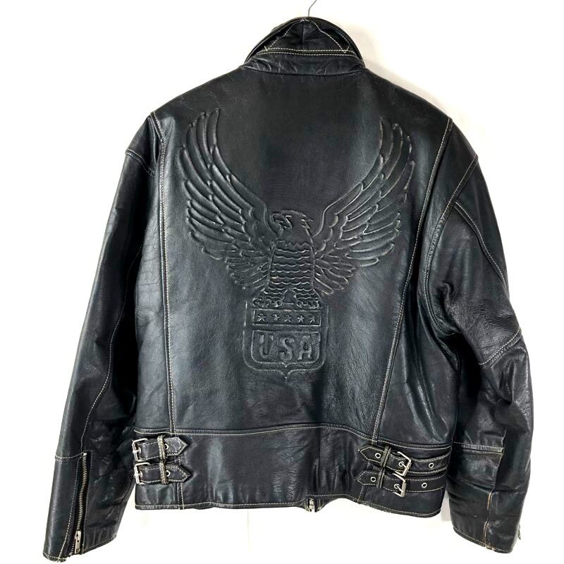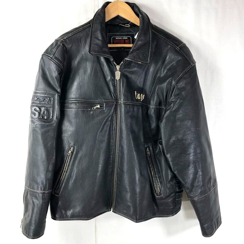 マイケル・ホーバン MICHAEL HOBAN レザージャケット ライダースジャケット ロゴ入り ファスナーポケット ブラック 黒色 Mサイズ 932973