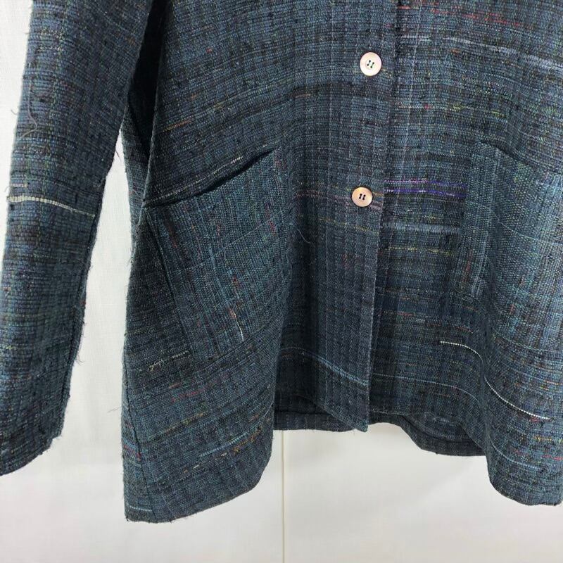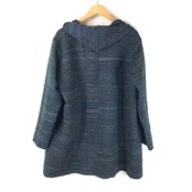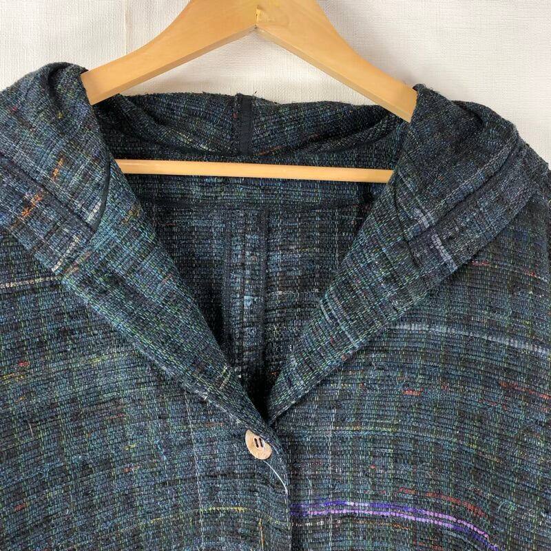 手織り工房ようこ コート 絹裂きコート 絹100% フード付き ボタン ポケット 日本製 深緑系 フリーサイズ 933807