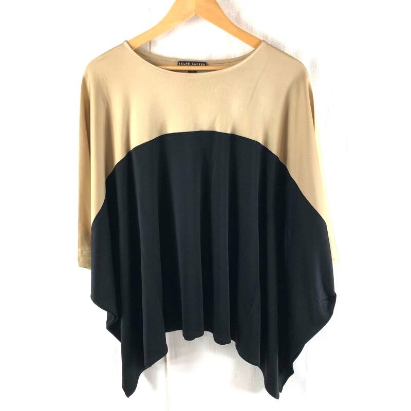 ラルフローレン Ralph Lauren カットソー シルク混 バイカラー ベージュ 黒 Sサイズ 934732