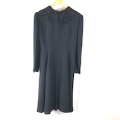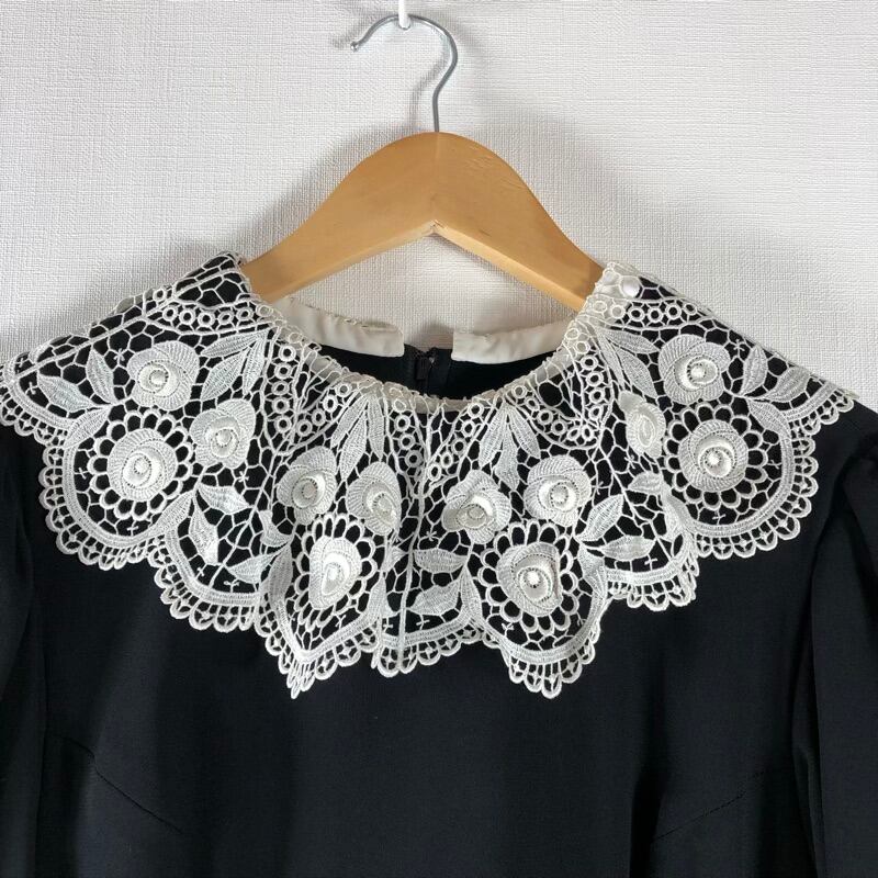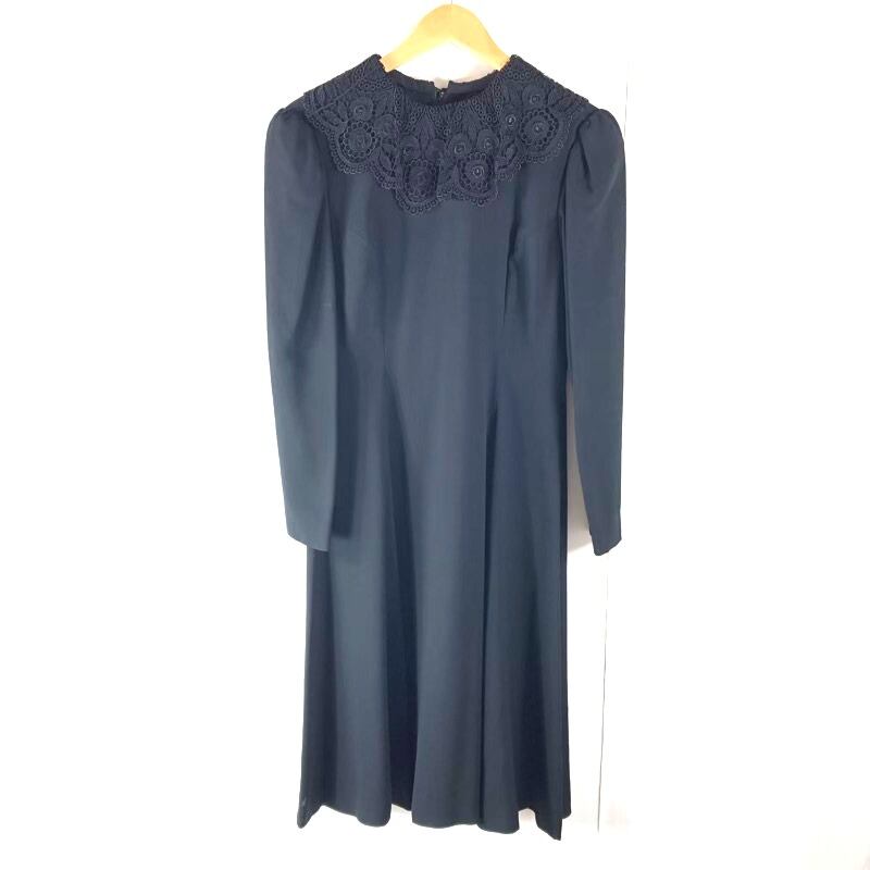 ハナエモリ 森英恵 / HANAE MORI ワンピース 長袖 付け襟 レース 襟2色セット フレア 裏地付き 黒 11A3サイズ 935467
