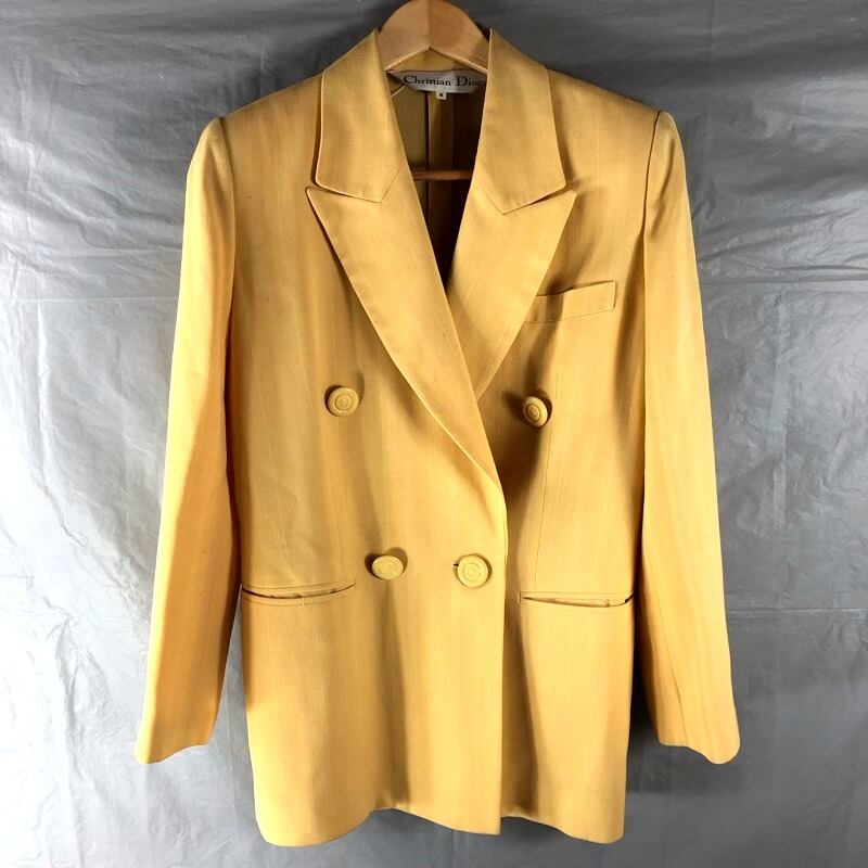 クリスチャンディオール Christian Dior ジャケット 胸ポケット 肩パット サイドポケット 袖ボタン 黄色 Mサイズ 935620