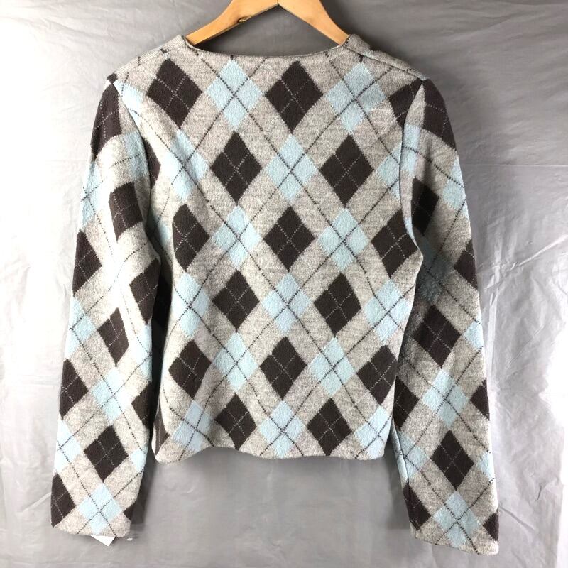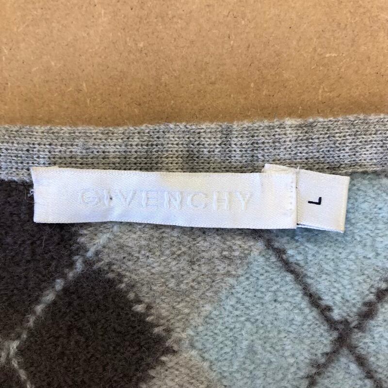 ジバンシー Givenchy ニット 長袖 アーガイル柄 ウール Vネック ワンポイント 水色 グレー 茶 Lサイズ 936465