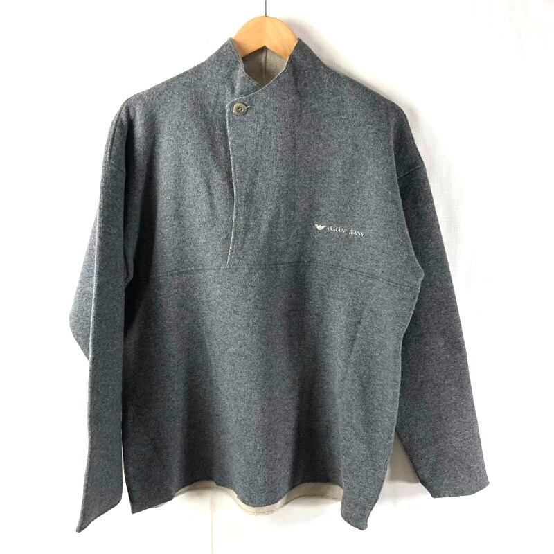 アルマーニジーンズ ARMANI JEANS トレーナー 襟元ボタン 長袖 胸元ワンポイント イタリア製 グレー Mサイズ 938180