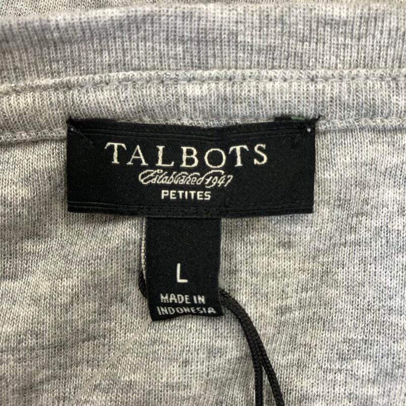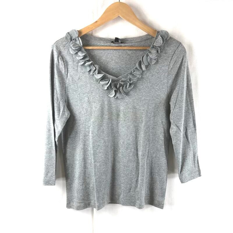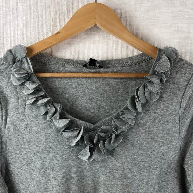 タルボット TALBOTS カットソー 長袖 フリル Vネック 綿 タグ付き グレー Lサイズ 941293