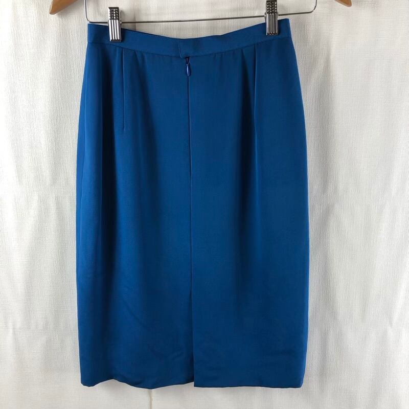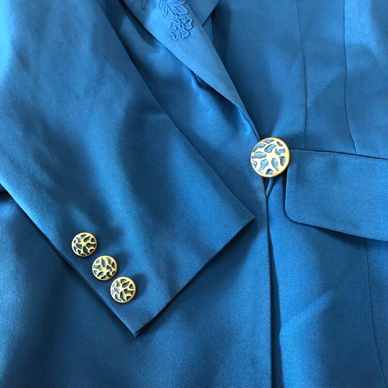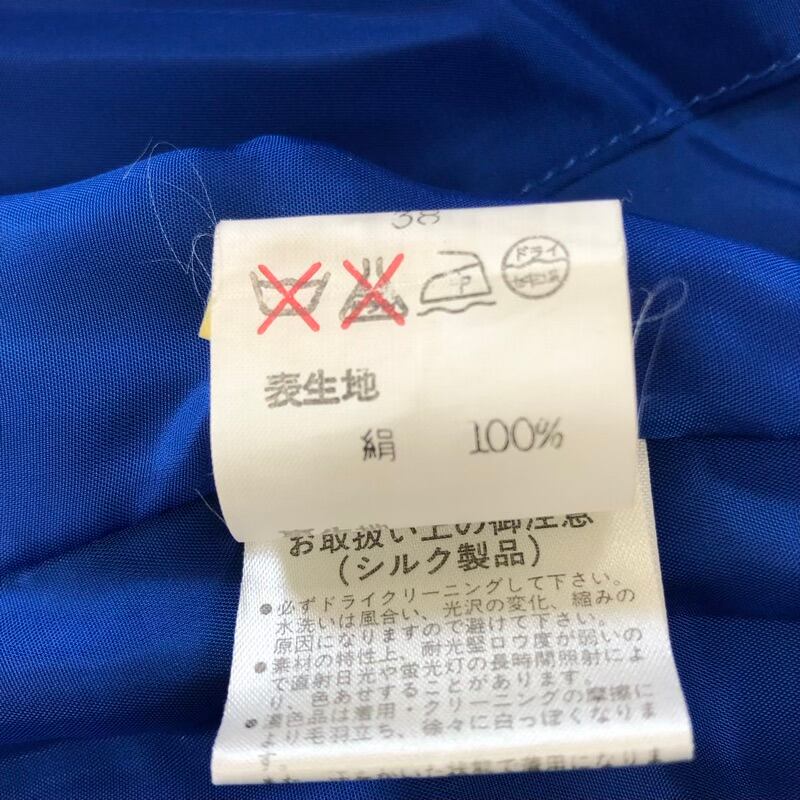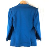 ハナエモリ 森英恵 / HANAE MORI スーツ ジャケット 襟刺繍 飾りボタン 肩パット 絹100% スカート スリット 裏地付き 青 38サイズ 943200