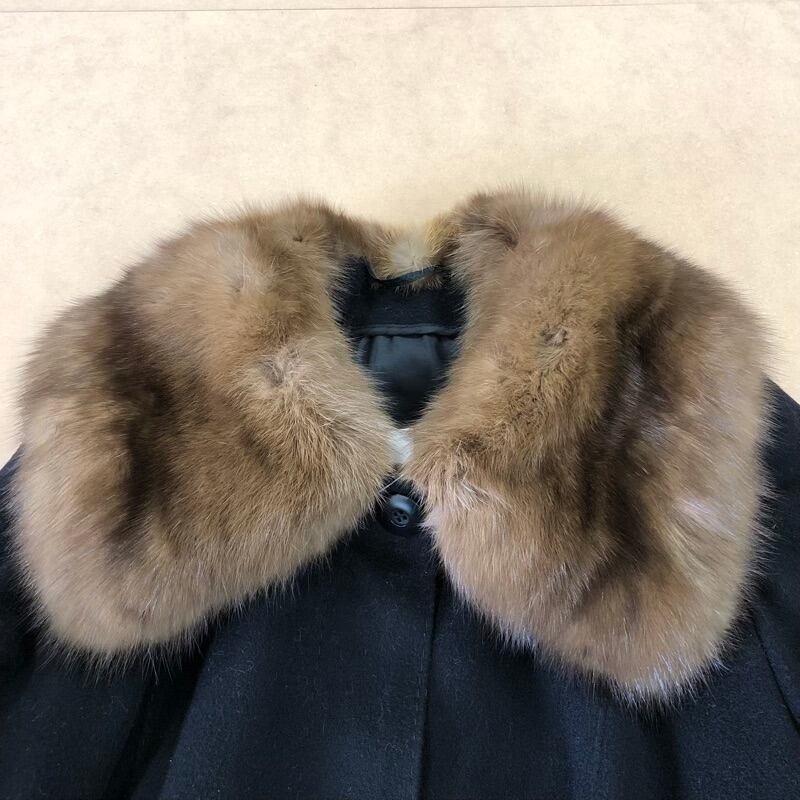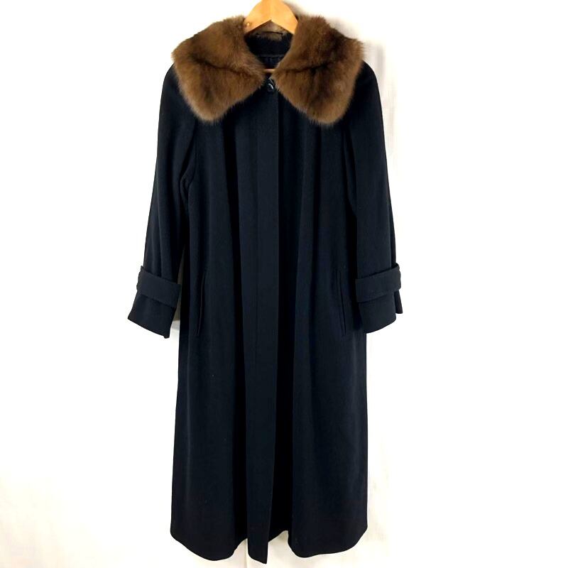 ファー襟付きコート ピュアカシミア ロングコート 裏地付き ブラック 938147