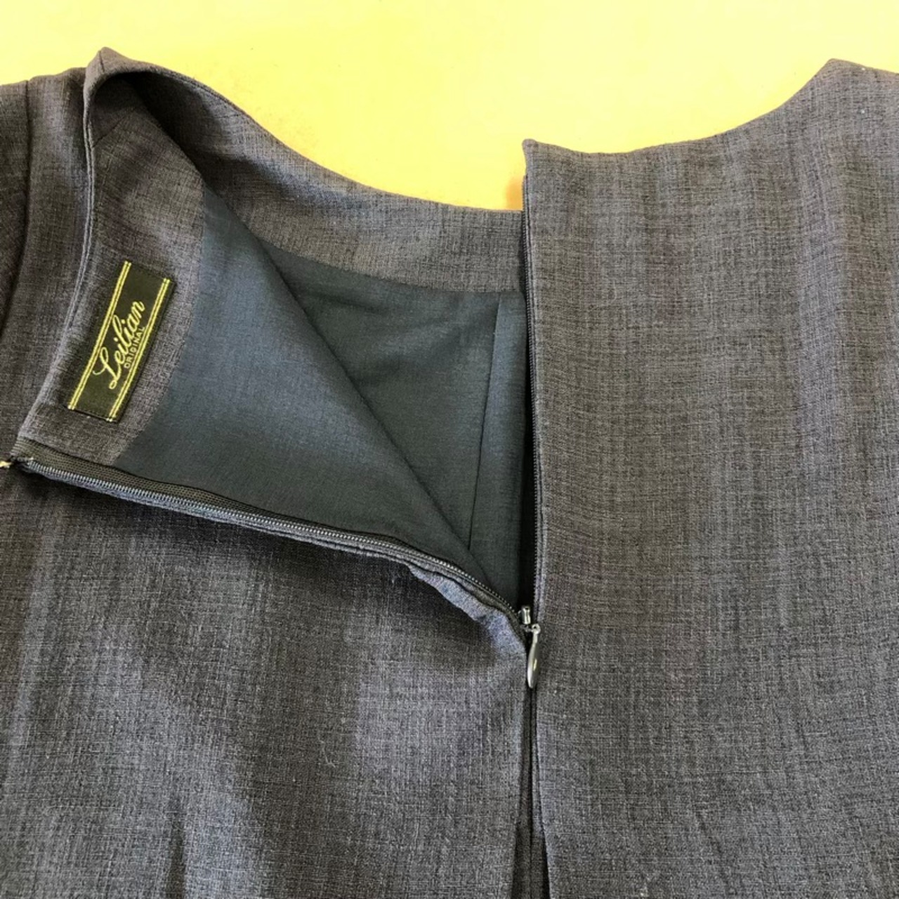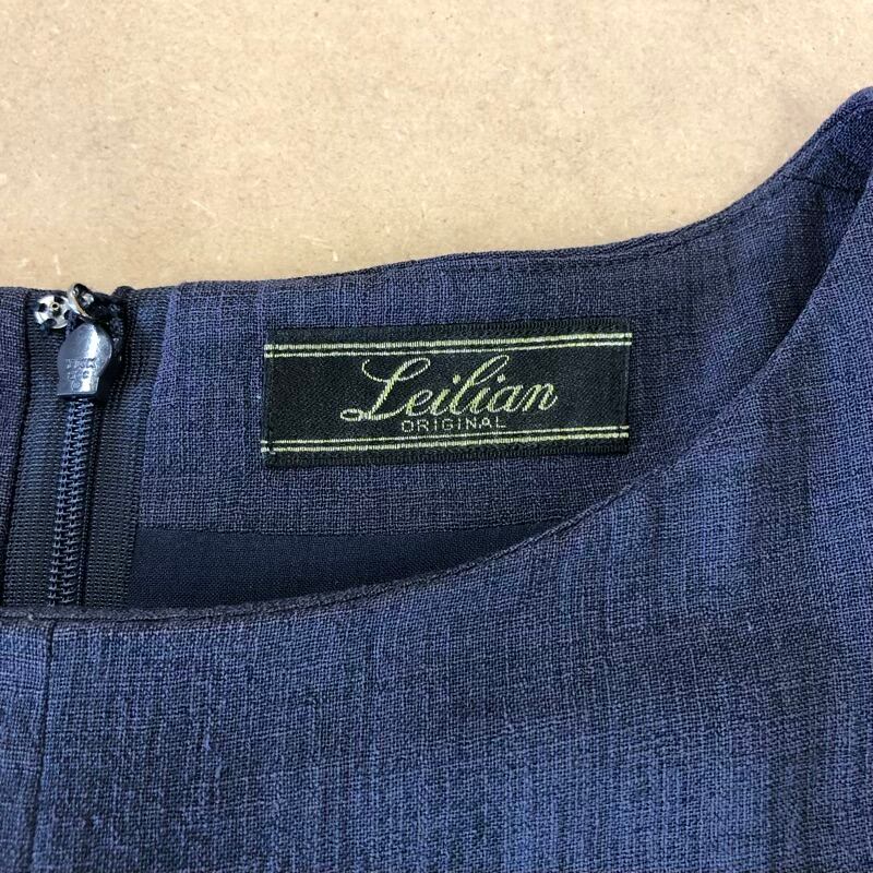 レリアン leilian ワンピース ロング丈 ボートネック 半袖 裏地付き 日本製 タックデザイン グレー 9サイズ 944146