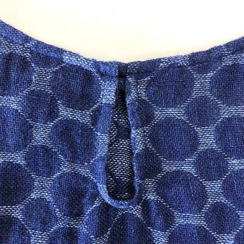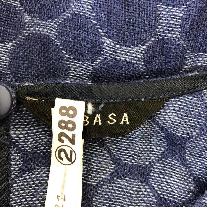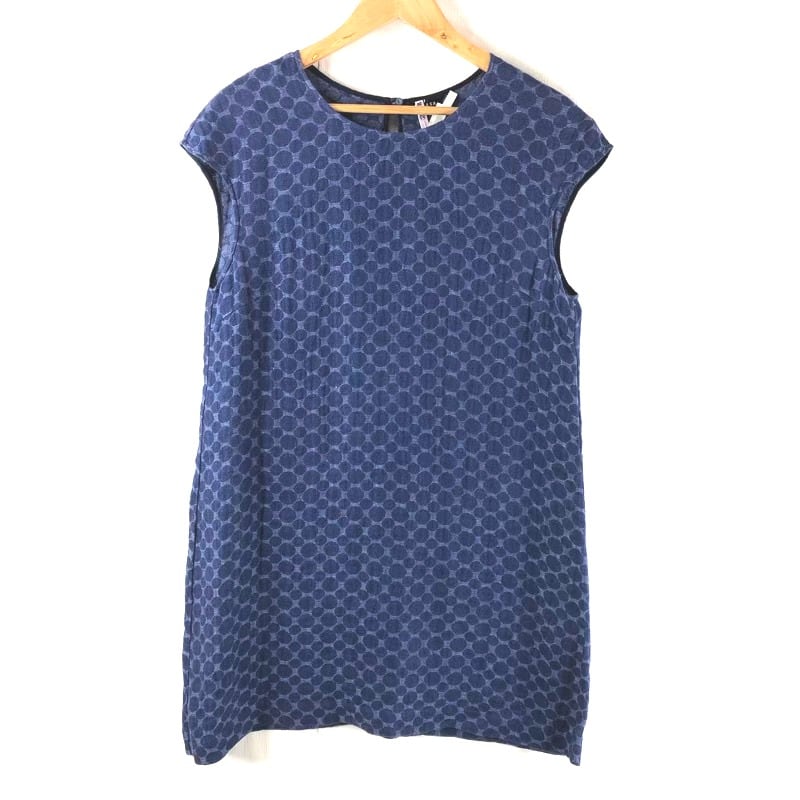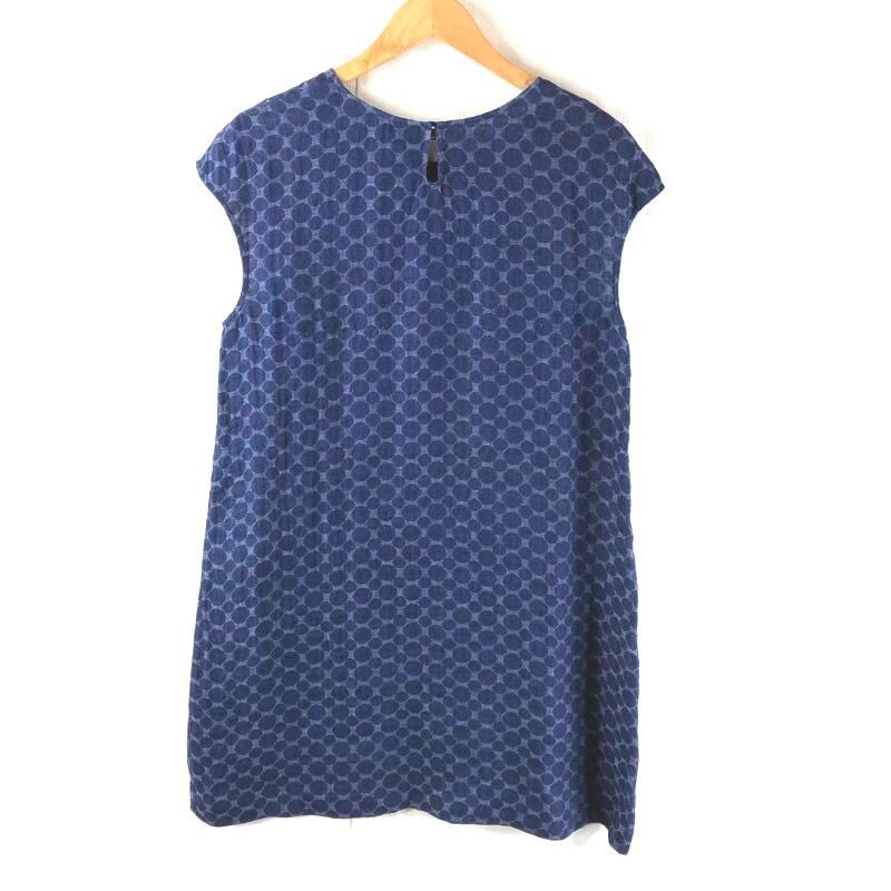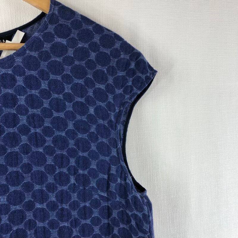 タバサ TABASA ワンピース フレンチスリーブ 水玉 麻100% ネイビー系 34サイズ 944162