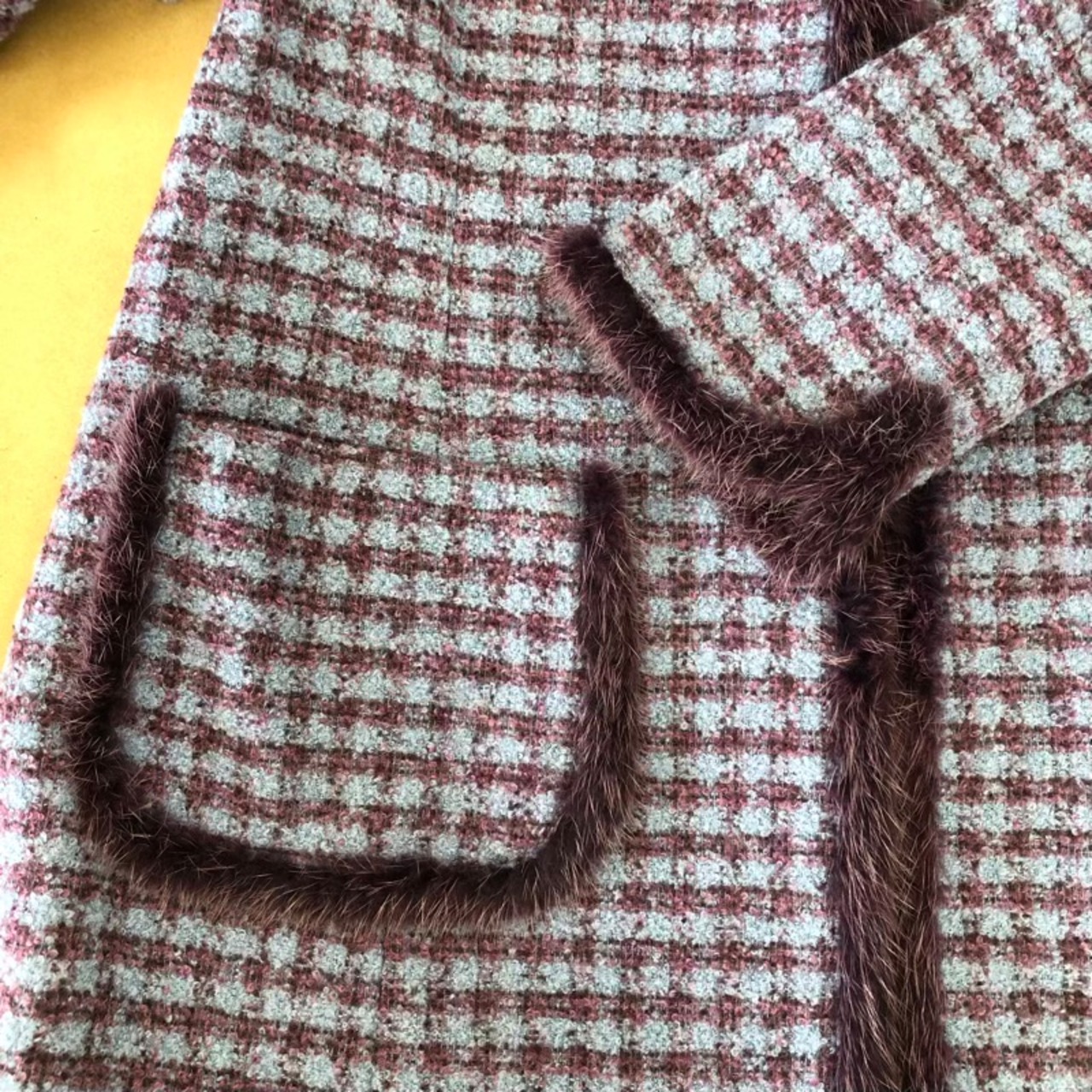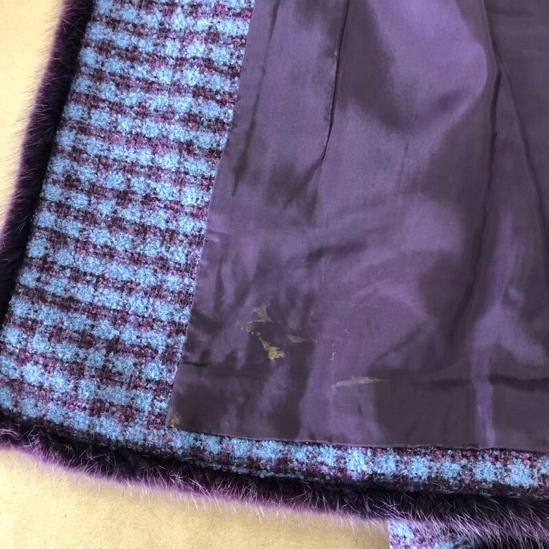 ジュンアシダ jun ashida セットパップ ミンク付きスカートスーツ アルパカ混 チェック パープル系 9サイズ 946560