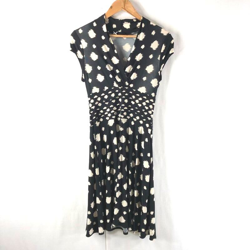 シネカノンデザインインパリス Sinequanone designed in paris ワンピース フレンチスリーブ Vネック カシュクール フレア 柄 黒系 946681 | Ethical Store