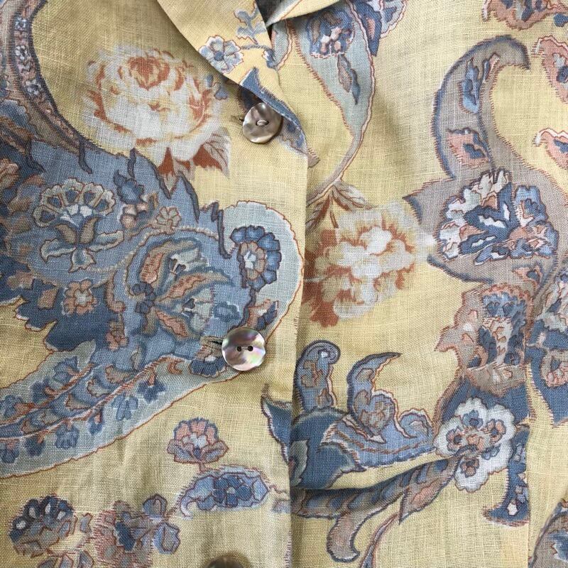 バーバリー BURBERRY シャツ 半袖 エスニック柄 花柄 肩パット 麻100% イエロー 13サイズ 946811
