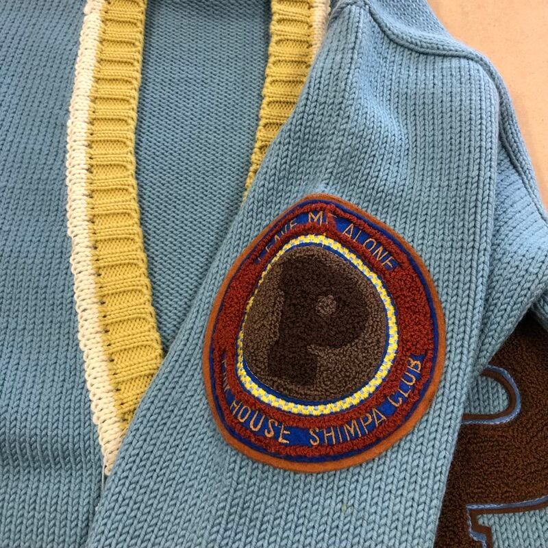 ピンクハウス PINK HOUSE カーディガン ニット Pロゴ 配色デザイン ワッペン付き ウール100% 水色系 947178