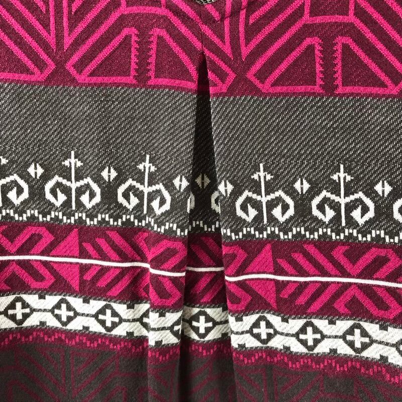フィットミーモア Fitme Moi チュニック 長袖 Vネック タック エスニック 柄模様 グレー ピンク系 948734