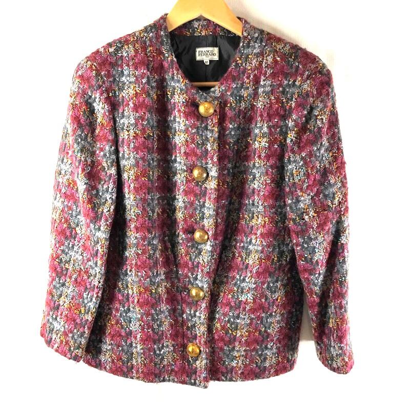 フランコフェラーロ FRANCO FERRARO セットアップ ジャケット 金ボタン 襟無し スカート 裏地付き イタリア製 赤系 949093