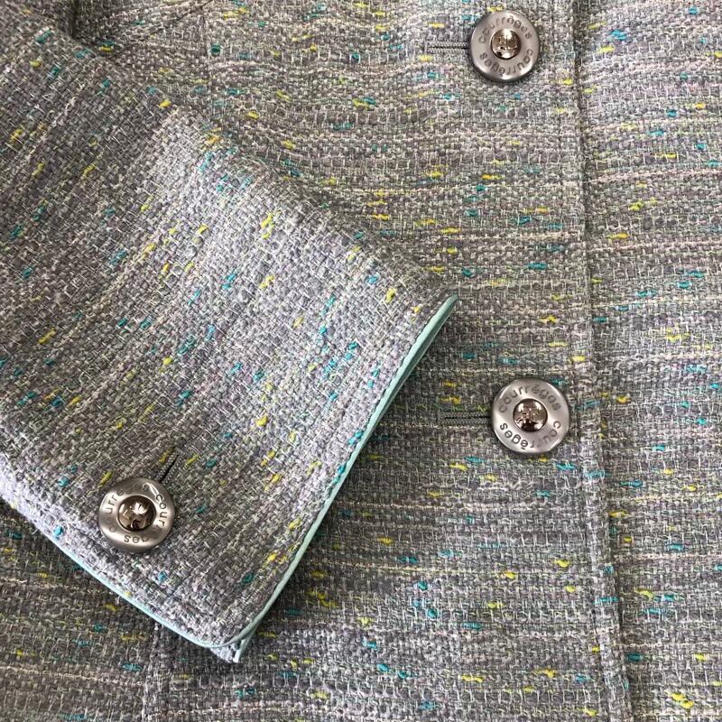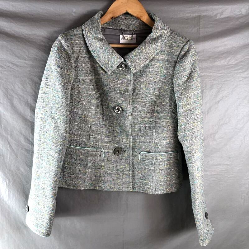 クレージュ Courreges セットアップ ワンピーススーツ ロゴチャーム付き ツイード生地 裏地付き グリーン系 グレー系 40サイズ 949130