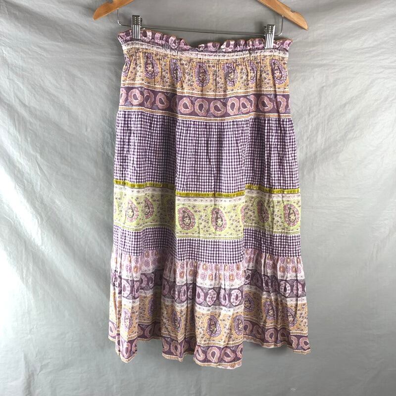 ジーンナッソーズ jean nassaus スカート 綿 ラメ ダマスク チェック 花柄 フレア ウエストゴム 日本製 紫系 3サイズ 949886