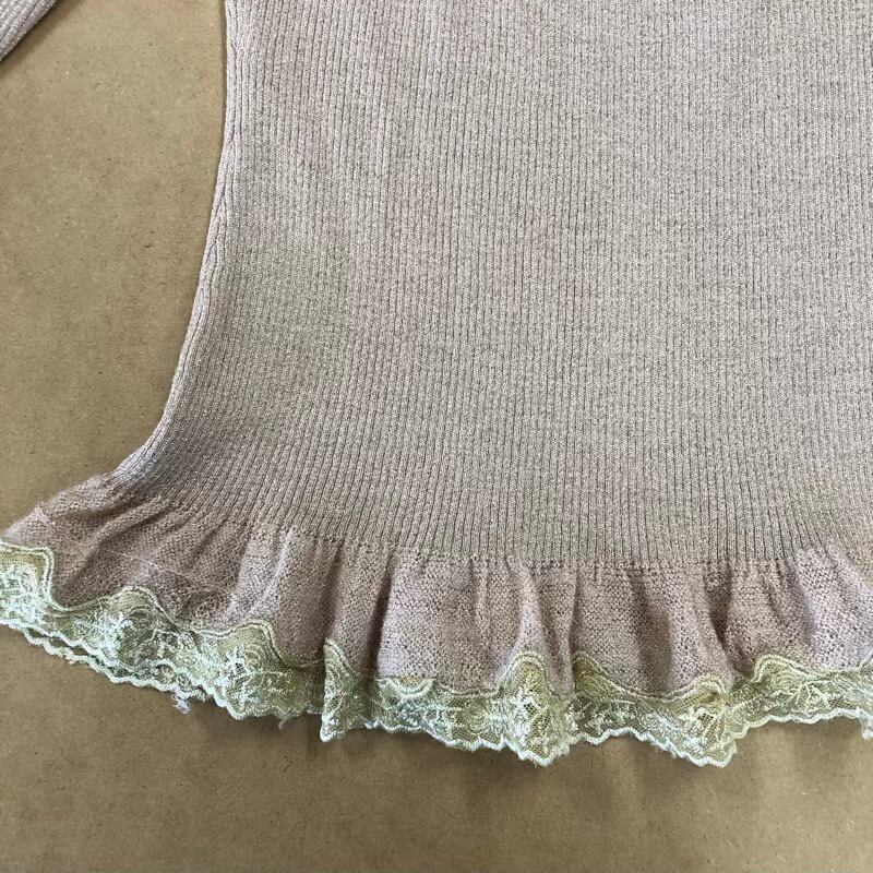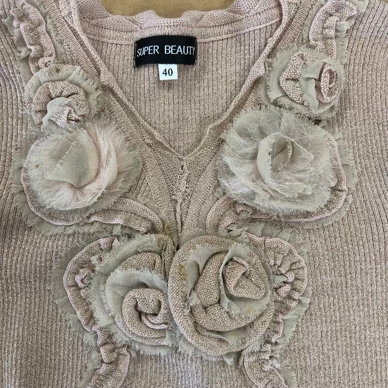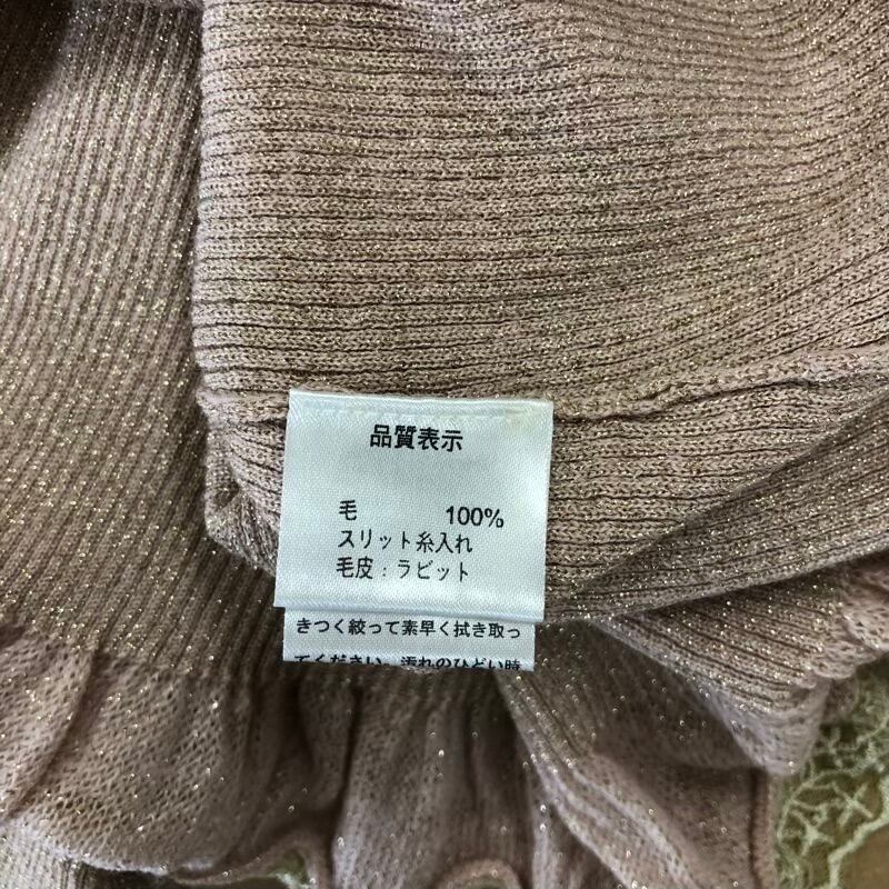 スーパービューティー SUPERBEAUTY ニット Vネック コサージュ ラビット毛皮 レース ゴールド ピンク 40サイズ 949930