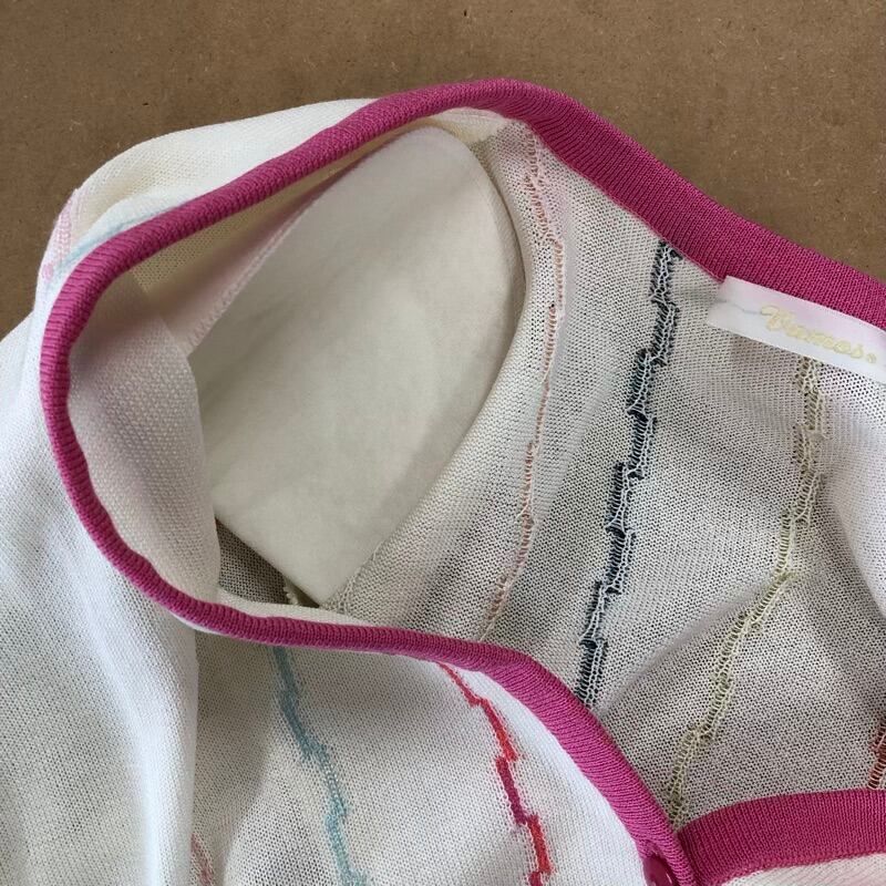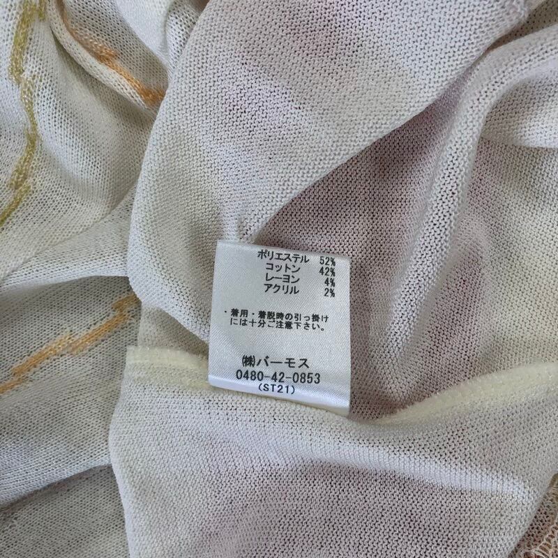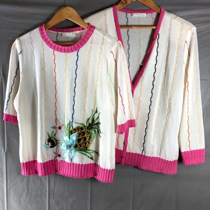 バーモス Vamos アンサンブル 日本製 タグ付き ストライプ フルーツ 花柄刺繡 ビーズ マルチカラー ピンク ホワイト系 LLサイズ 949953