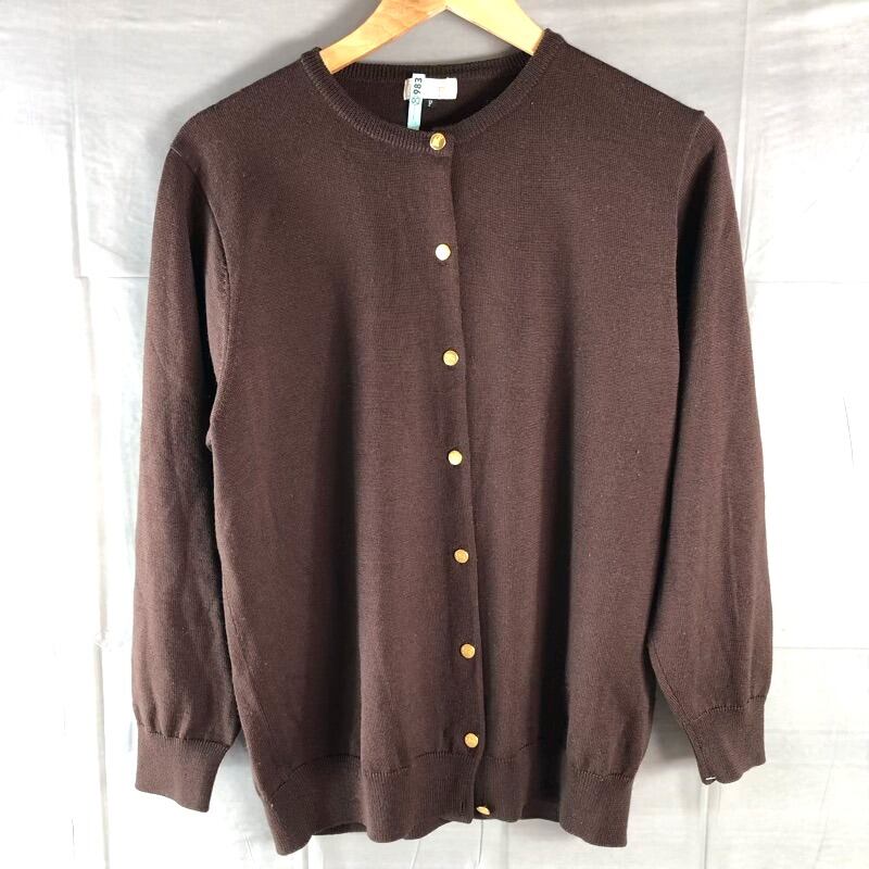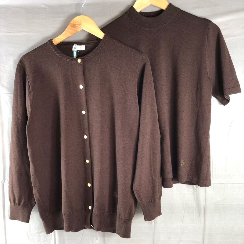 バーバリー BURBERRY アンサンブル ツインニット セットアップ ハイゲージ ウール100% ロゴボタン ロゴ刺繡 ブラウン Fサイズ 951025