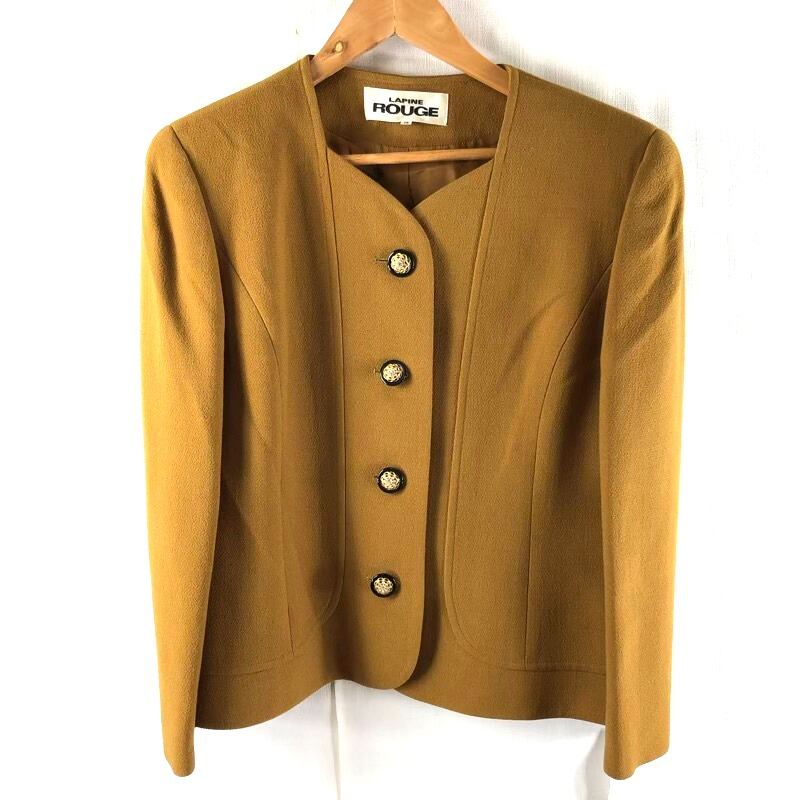 ラピーヌ ルージュ ROUGE LAPINE スーツ ジャケット 肩パット 装飾ボタン スカート サイドポケット スリット マスタード 13サイズ 951036