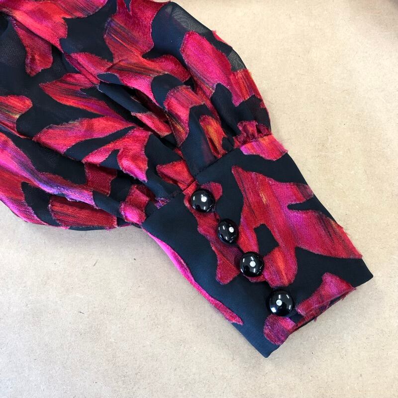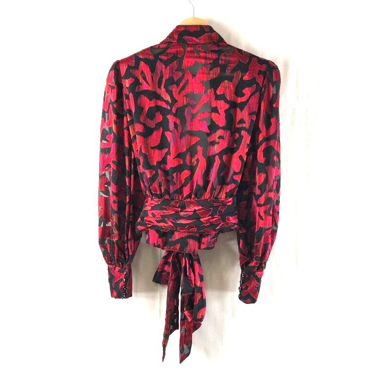 ハーディエイミス HARDY AMIES LONDN ジャケット シースルー 柄模様 リボン紐 デザインボタン 肩パッド 組成表示タグなし 黒 赤系 9サイズ 958932 | Ethical Store
