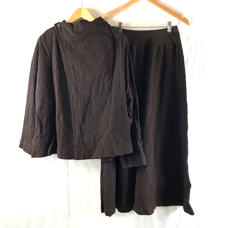 ビーエクス bi:-eks セットアップ カーディガン スカート 日本製 コットン100% ロング丈 フレアスカート ブラウン 茶 Fサイズ958956