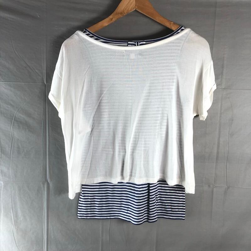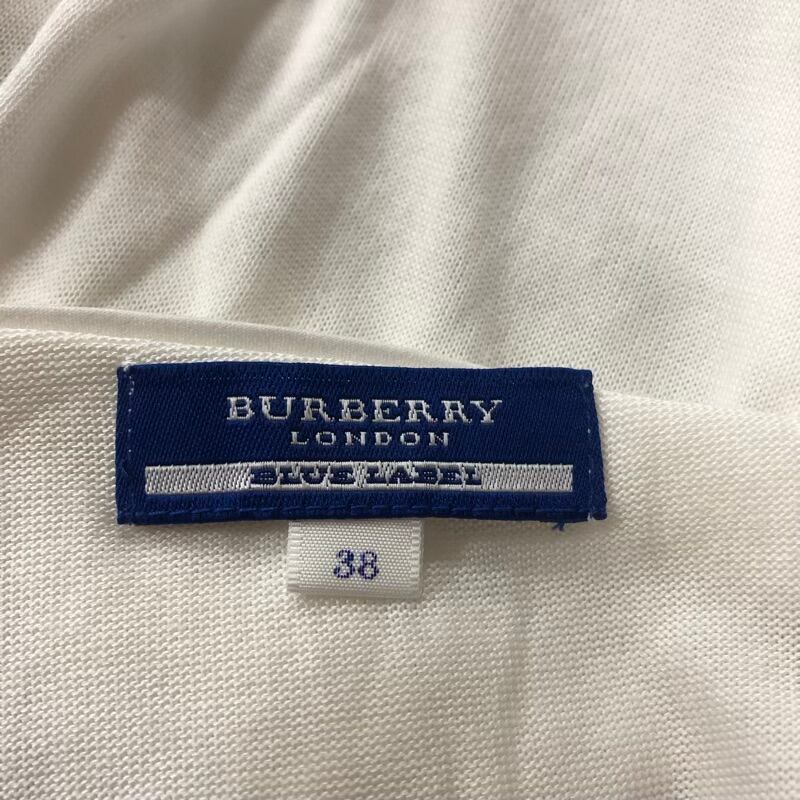バーバリーロンドン BURBERRY LONDON BLUE LABEL アンサンブル カットソー タンクトップ 半袖 ボーダー ロゴ刺繡 デザイン袖 青 白系 38サイズ 963699 | Ethical Store