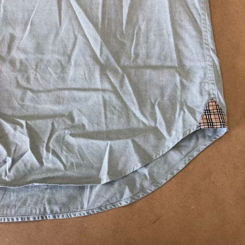 バーバリーブラックレーベル BURBERRY BLACK LABEL シャツ 半袖 綿100% ロゴ刺繍 ボタン ポケット チェック柄 ミントグリーン系 3サイズ 961923