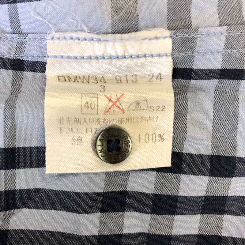 バーバリーブラックレーベル BURBERRY BLACK LABEL シャツ 半袖 チェック柄 綿100% ロゴ刺繍 ボタン 日本製 ネイビー 水色系 3サイズ 961924