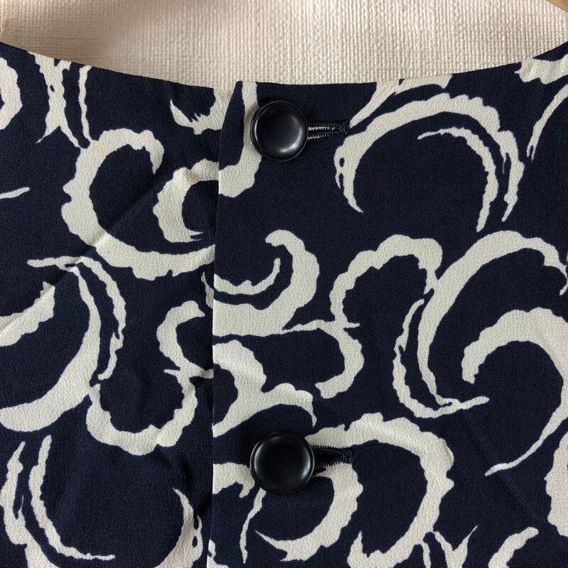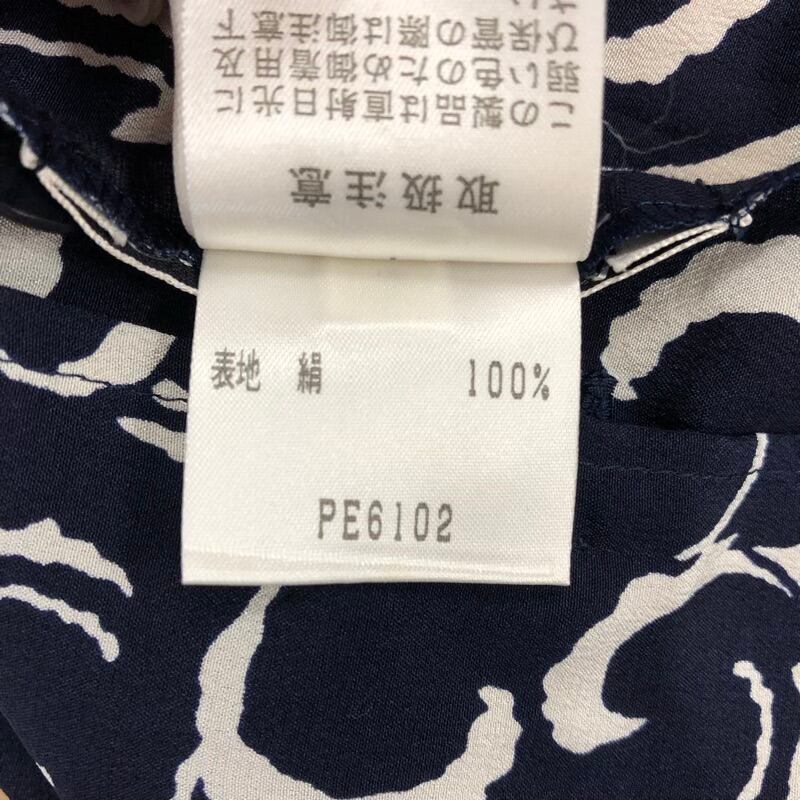 ジュンアシダ jun ashida カットソー 半袖 絹100% 柄模様 スリット裾 バックボタン 脇パッド ネイビー系 11サイズ 951092