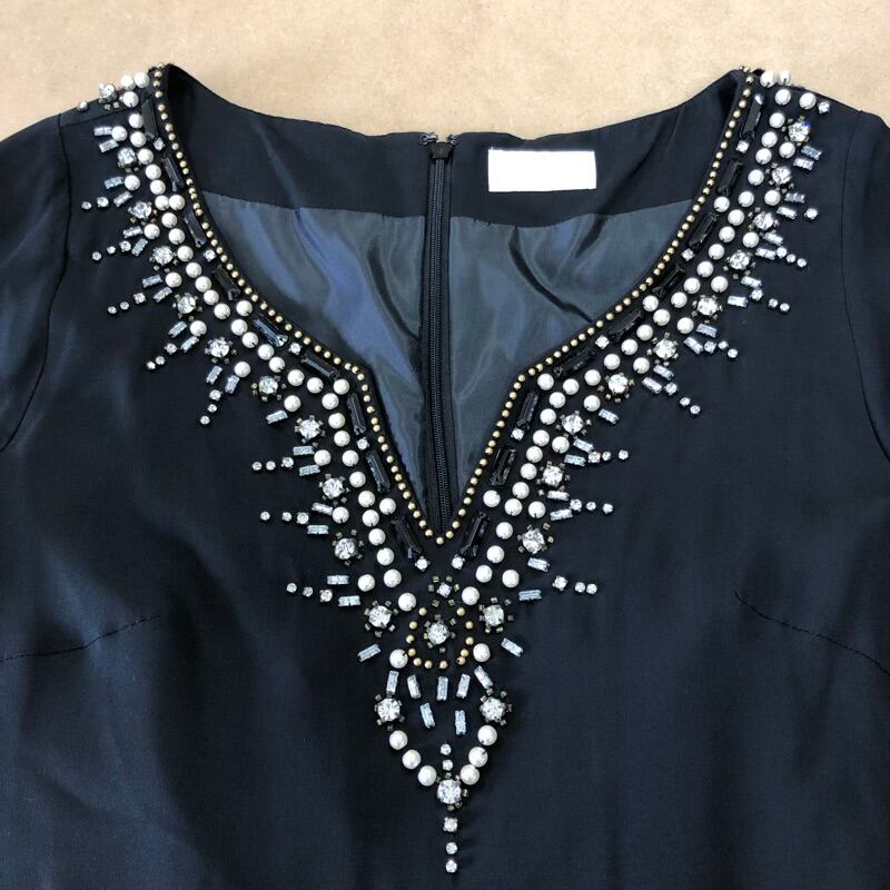 グレースクラス Grace Class ワンピース タグ付き ビーズ ビジュー 装飾 裏地付き 袖フレア シルク100% バックファスナー 黒 36サイズ 954063 | Ethical Store