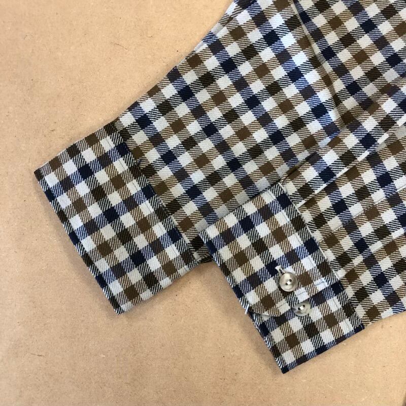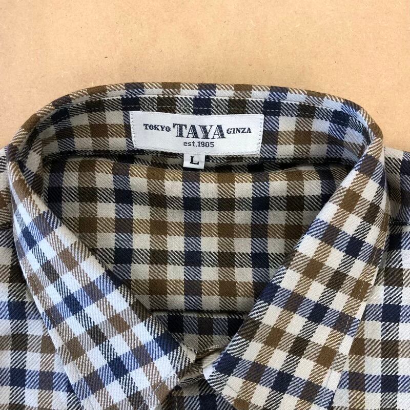 トウキョウ タヤ ギンザ TOKYO TAYA GINZA シャツ レギュラーシャツ チェック 毛100% 日本製 ベージュ系 ブラウン系 Lサイズ 956181