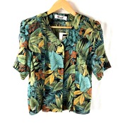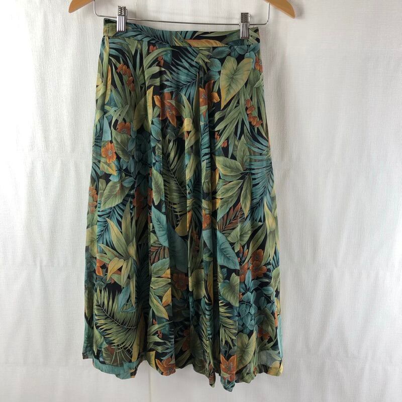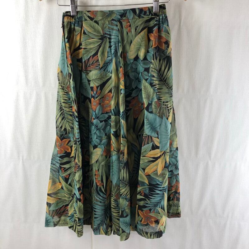 ブティックエコー BOUTIQUE ECHO セットアップ ジャケット スカート 肩パット タグ付き 半袖 ボタン ボタニカル柄 裏地付き 薄手 グリーン系 10-11サイズ 958617 | Ethical Store