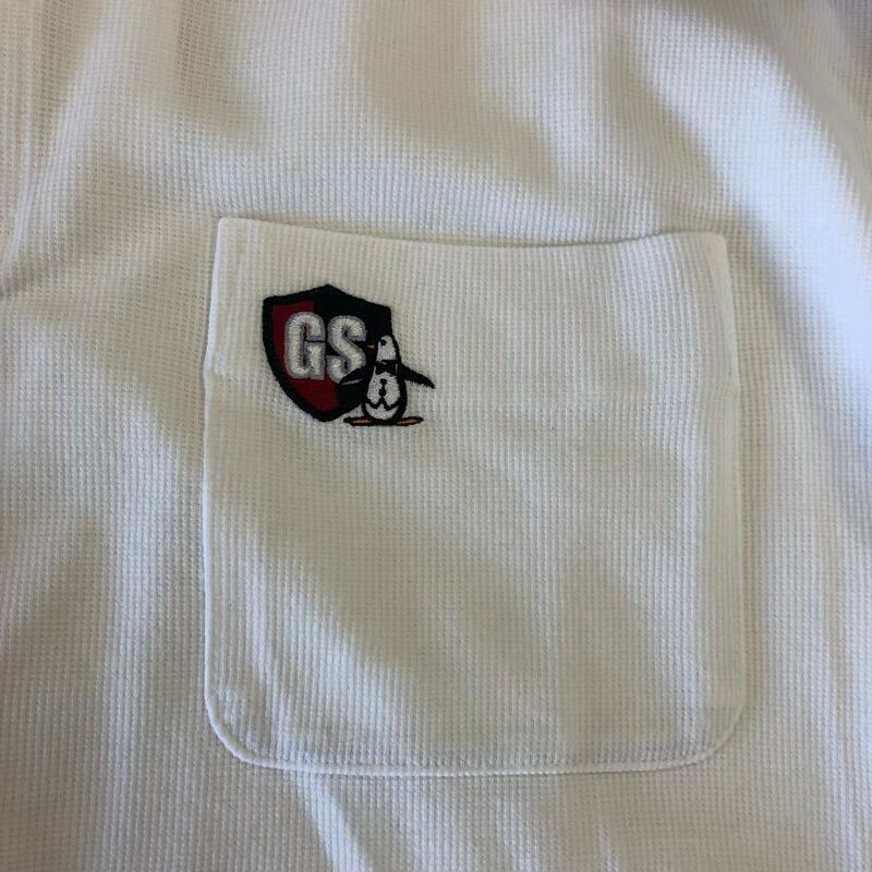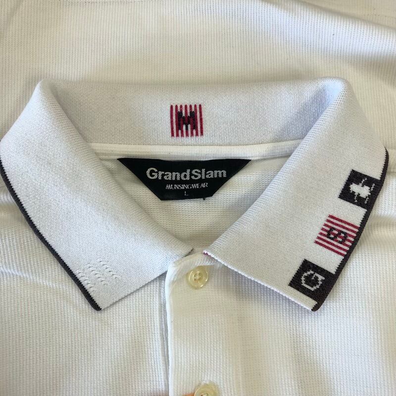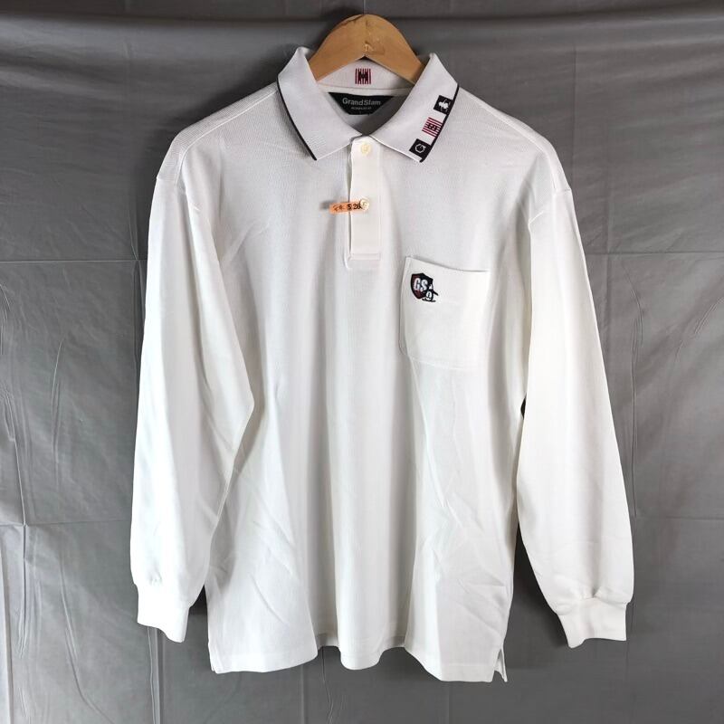 マンシングウェアグランドスラム Munsingear Grand-Slam ポロシャツ 長袖 ロゴ刺繍 ペンギン デザイン襟 ポケット リブ スリット裾 綿 白 Lサイズ 958642 | Ethical Store