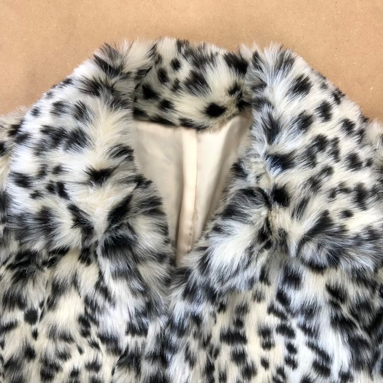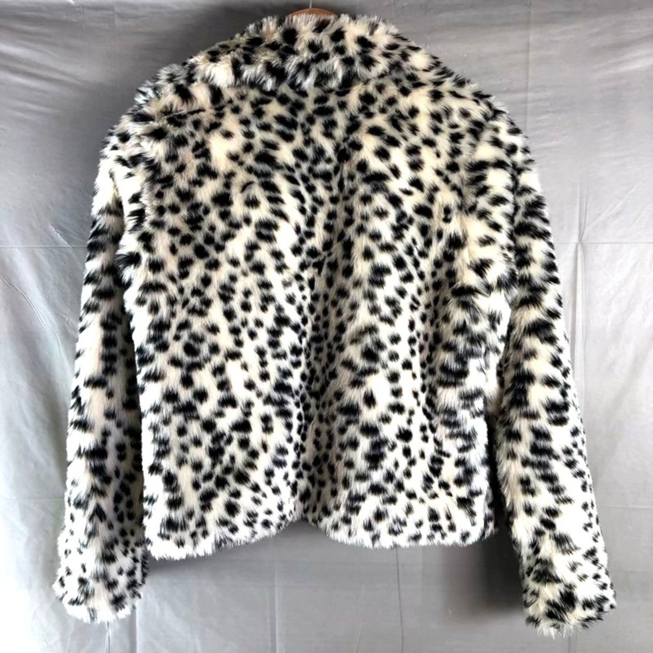 コムサイズム COMME CA ISM ジャケット フェイクファー レオパード ヒョウ柄 オープンカラー ホワイト系 Lサイズ 958847