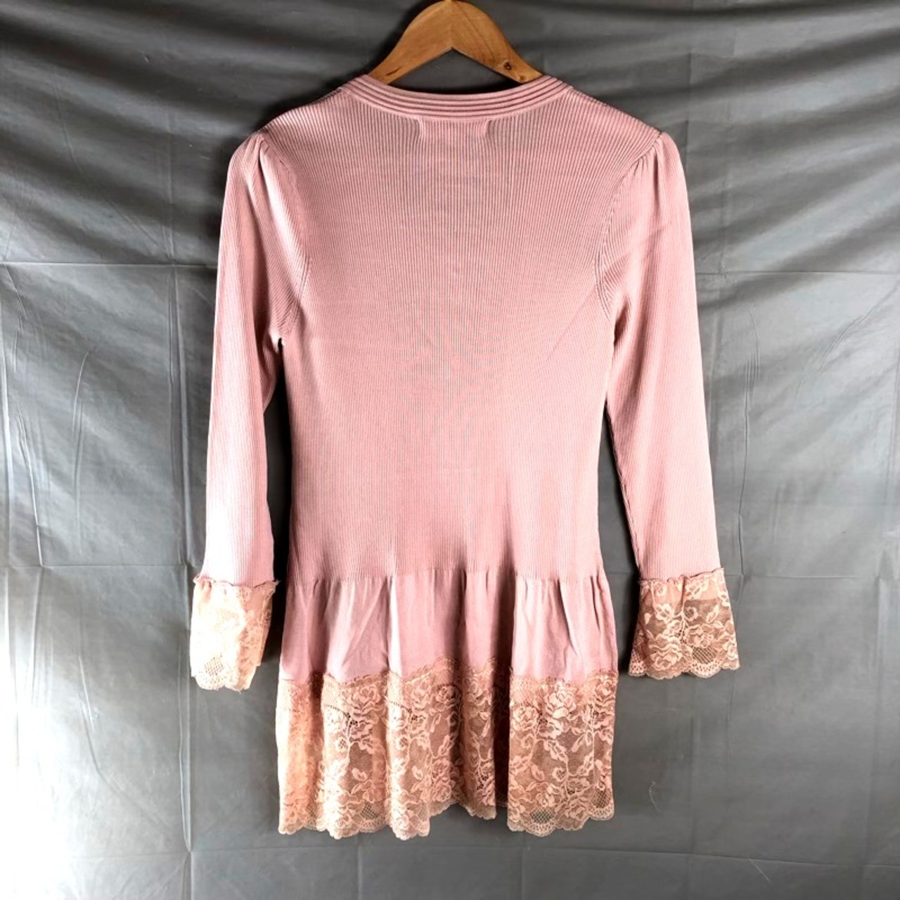 スーパービューティー super beauty カーディガン ロング レース ビジュー装飾 スナップボタン 長袖 ピンク 42サイズ 963763