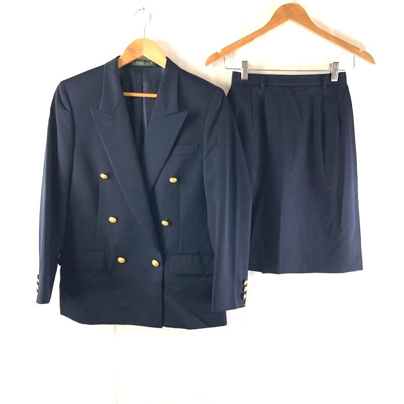 ニューヨーカー NEWYORKER セットアップ ジャケット スカート スーツ ゴールドボタン ウール100% スリット 裏地付き 日本製 紺 9ARサイズ 964457 | Ethical Store