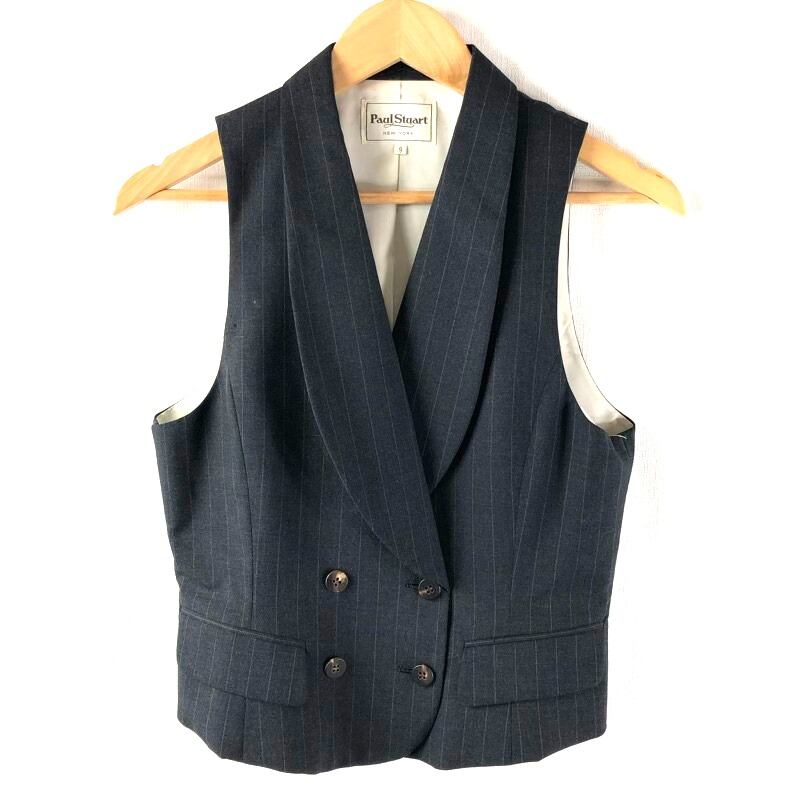 ポールスチュアート PaulStuart セットアップ ベスト 襟付き ボタン スカート ロング 裏地付き スリット ストライプ ダークグレー 946837