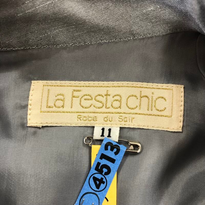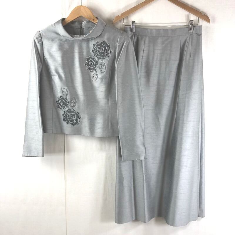 ラフェスタシック La Festa chic セットアップ トップス ロングスカート ハイネック バラ 刺繍 ラメ 日本製 肩パッド グレー 11サイズ 944094