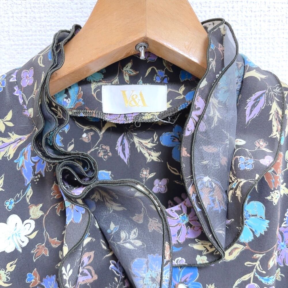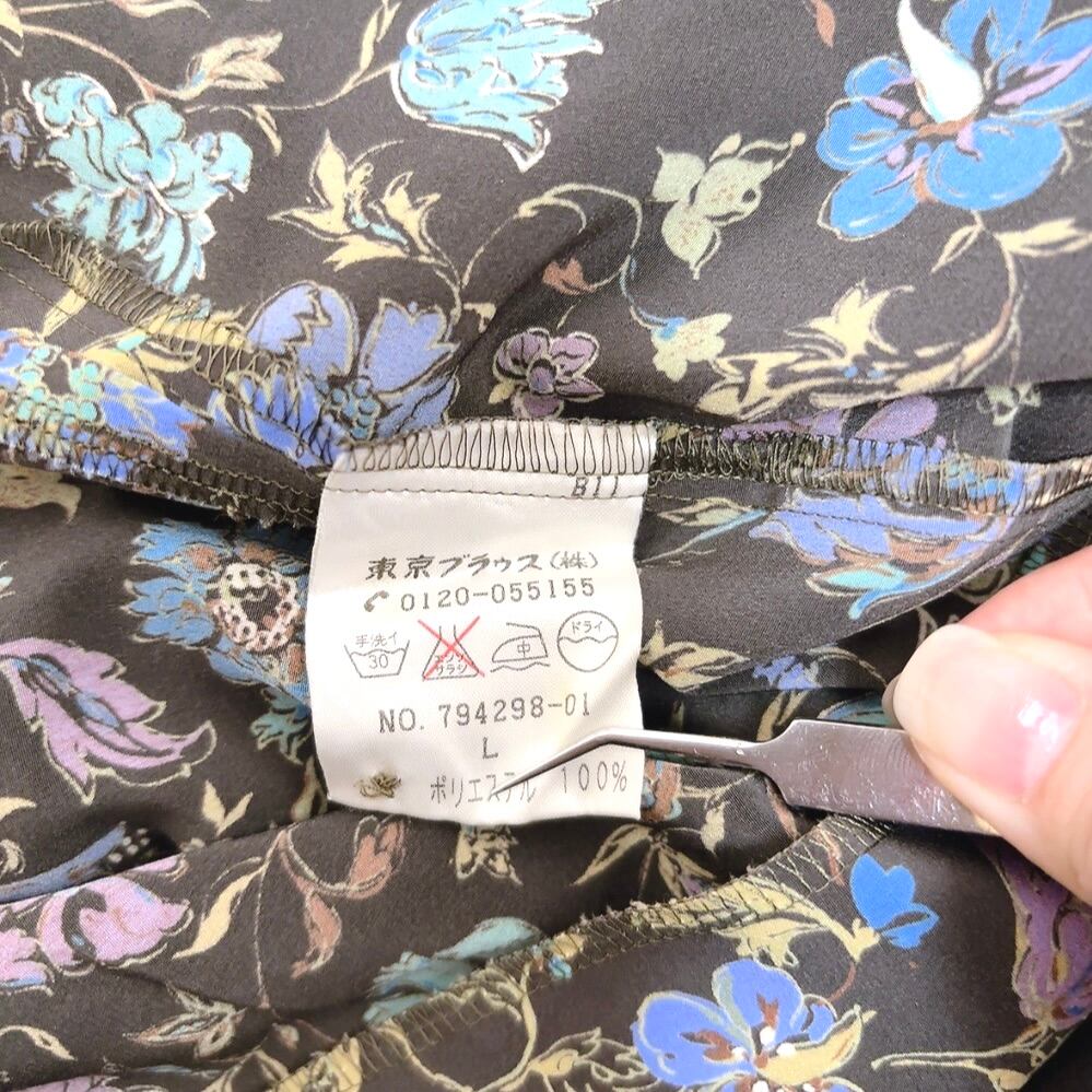 東京ブラウス V&A ブラウス 花柄 黒系x青 Lサイズ 964853